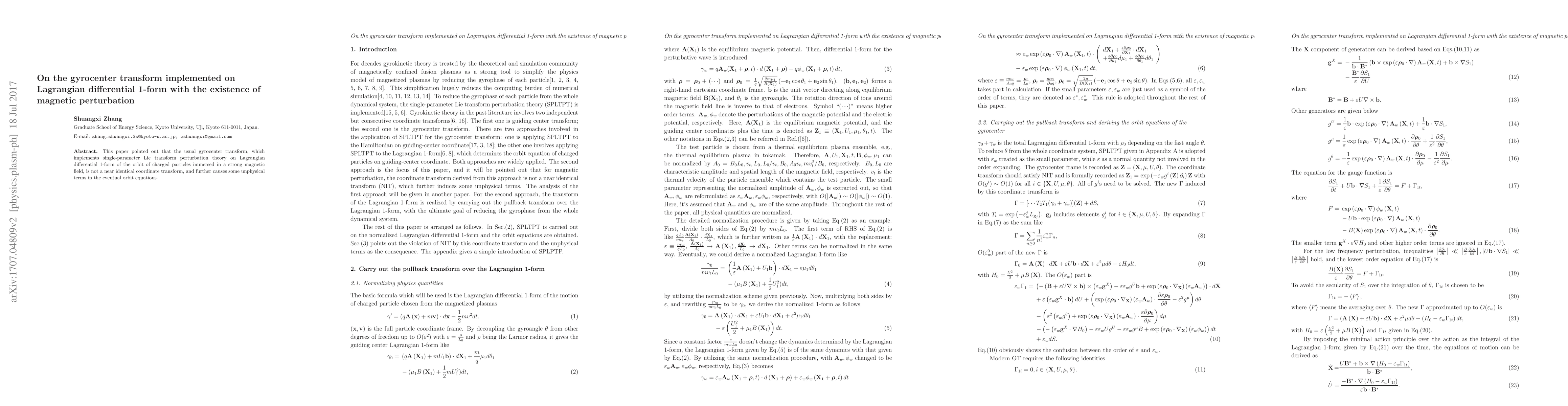 This paper pointed out that the usual gyrocenter transform, which implements single-parameter Lie transform perturbation theory on Lagrangian differential 1-form of the orbit of charged particles immersed in a strong magnetic field, is not a near identical coordinate transform, and further causes some unphysical terms in the eventual orbit equations.