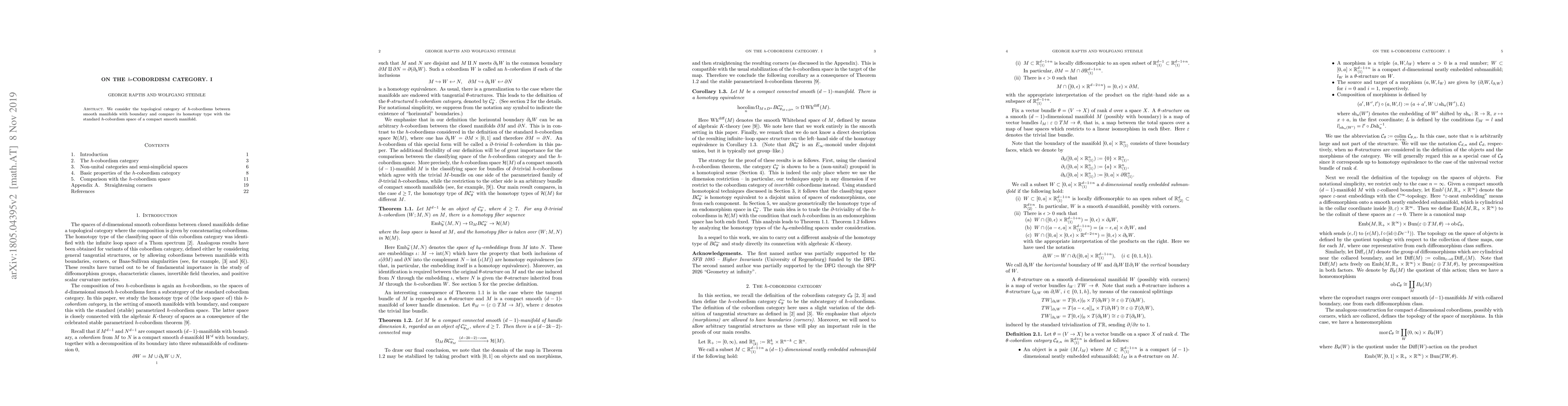 Summary: This paper explores the topological category of $h$-cobordisms between manifolds with boundary, comparing its homotopy type to the conventional $h$-cobordism space of a compact smooth manifold. The study aims to understand the structural similarities and differences within these cobordism categories.