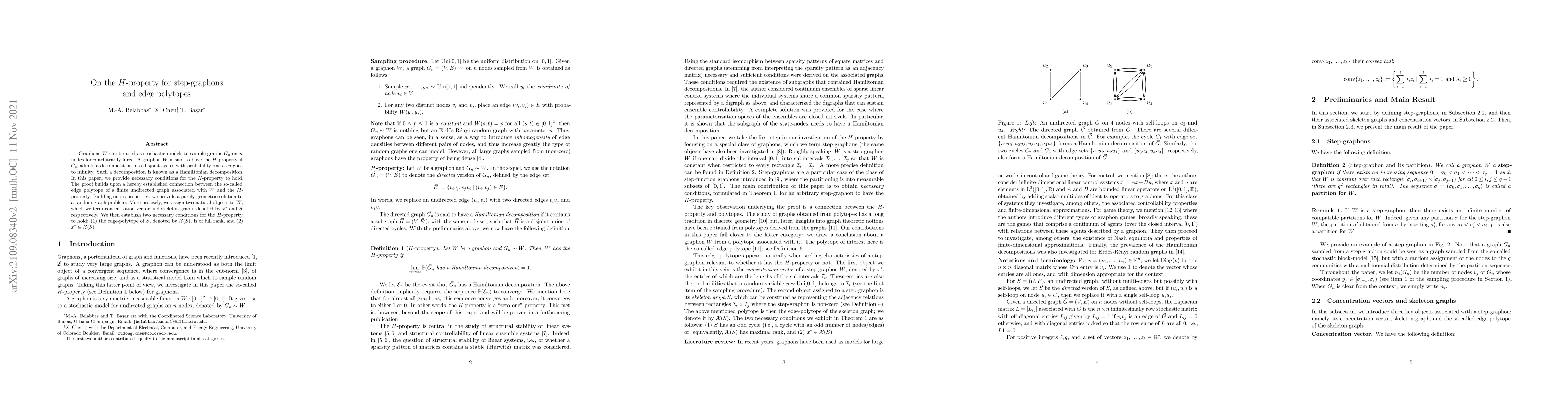 Graphons $W$ can be used as stochastic models to sample graphs $G_n$ on $n$ nodes for $n$ arbitrarily large. A graphon $W$ is said to have the $H$-property if $G_n$ admits a decomposition into disjoint cycles with probability one as $n$ goes to infinity. Such a decomposition is known as a Hamiltonian decomposition. In this paper, we provide necessary conditions for the $H$-property to hold. The proof builds upon a hereby established connection between the so-called edge polytope of a finite undirected graph associated with $W$ and the $H$-property. Building on its properties, we provide a purely geometric solution to a random graph problem. More precisely, we assign two natural objects to $W$, which we term concentration vector and skeleton graph, denoted by $x^*$ and $S$ respectively. We then establish two necessary conditions for the $H$-property to hold: (1) the edge-polytope of $S$, denoted by $\mathcal{X}(S)$, is of full rank, and (2) $x^* \in \mathcal{X}(S)$.