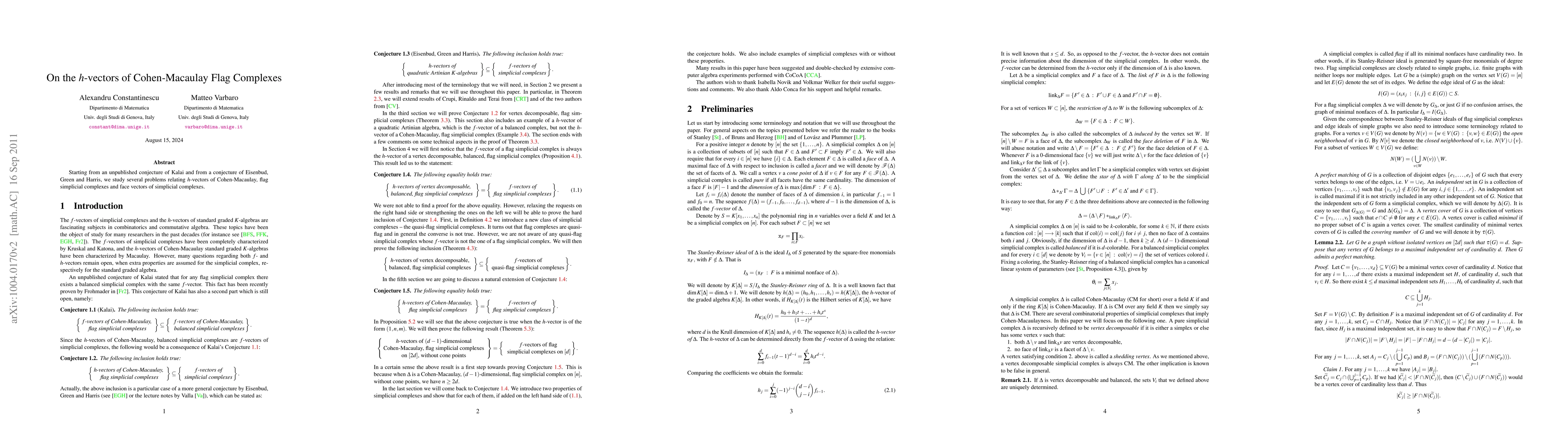 Summary: This paper investigates the relationship between h-vectors of Cohen-Macaulay flag simplicial complexes and conjectures from Kalai and Eisenbud, Green, and Harris concerning the face vectors of simplicial complexes. It explores several problems connecting these mathematical concepts.