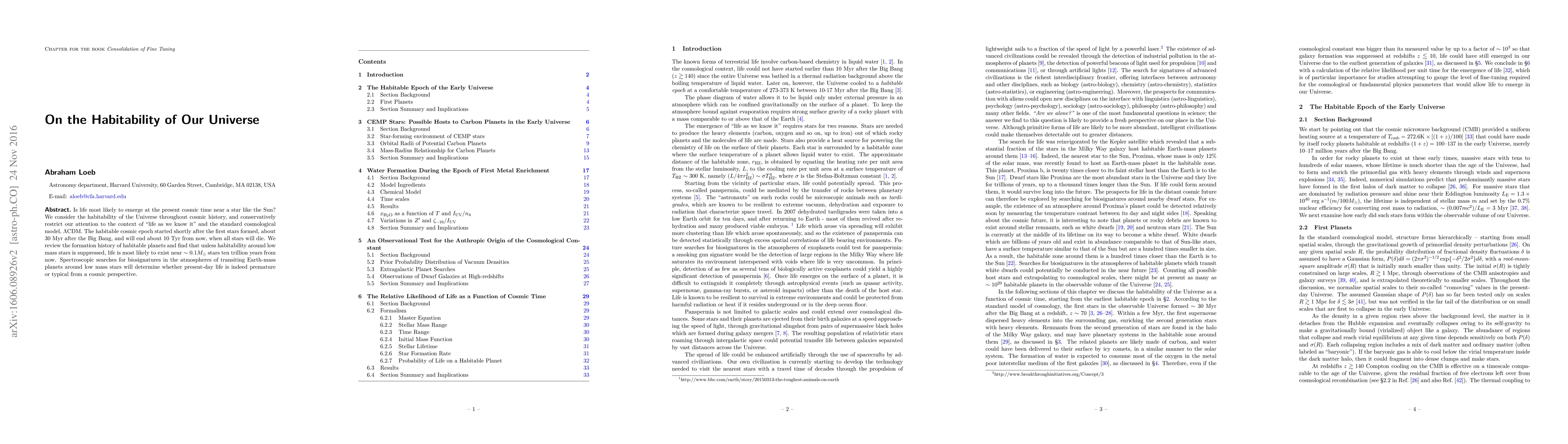 This paper explores the likelihood of life emerging and persisting in the Universe, focusing on the habitable epoch from the formation of the first stars to the eventual death of all stars. It suggests that life is most likely to thrive around low mass stars, and emphasizes the importance of spectroscopic searches for biosignatures in Earth-like planets around these stars to determine if current life is typical or premature.