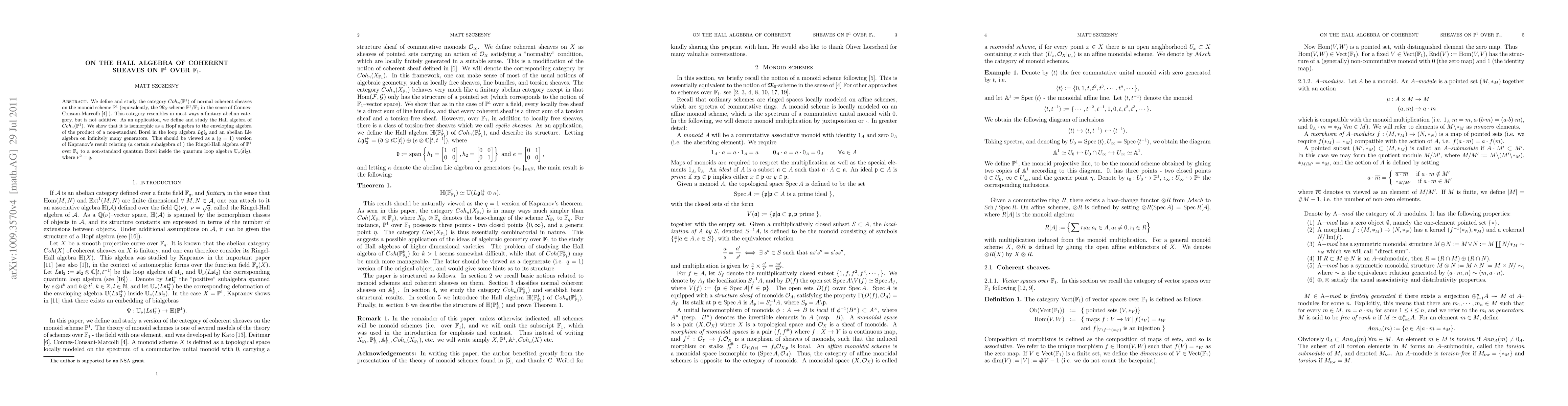 We define and study the category $Coh_n(\Pone)$ of normal coherent sheaves on the monoid scheme $\Pone$ (equivalently, the $\mathfrak{M}_0$-scheme $\Pone / \fun$ in the sense of Connes-Consani-Marcolli \cite{CCM}). This category resembles in most ways a finitary abelian category, but is not additive. As an application, we define and study the Hall algebra of $Coh_n(\Pone)$. We show that it is isomorphic as a Hopf algebra to the enveloping algebra of the product of a non-standard Borel in the loop algebra $L {\mathfrak{gl}}_2$ and an abelian Lie algebra on infinitely many generators. This should be viewed as a $(q=1)$ version of Kapranov's result relating (a certain subalgebra of) the Ringel-Hall algebra of $\mathbb{P}^1$ over $\mathbb{F}_q$ to a non-standard quantum Borel inside the quantum loop algebra $\mathbb{U}_{\nu} (\slthat)$, where $\nu^2=q$.