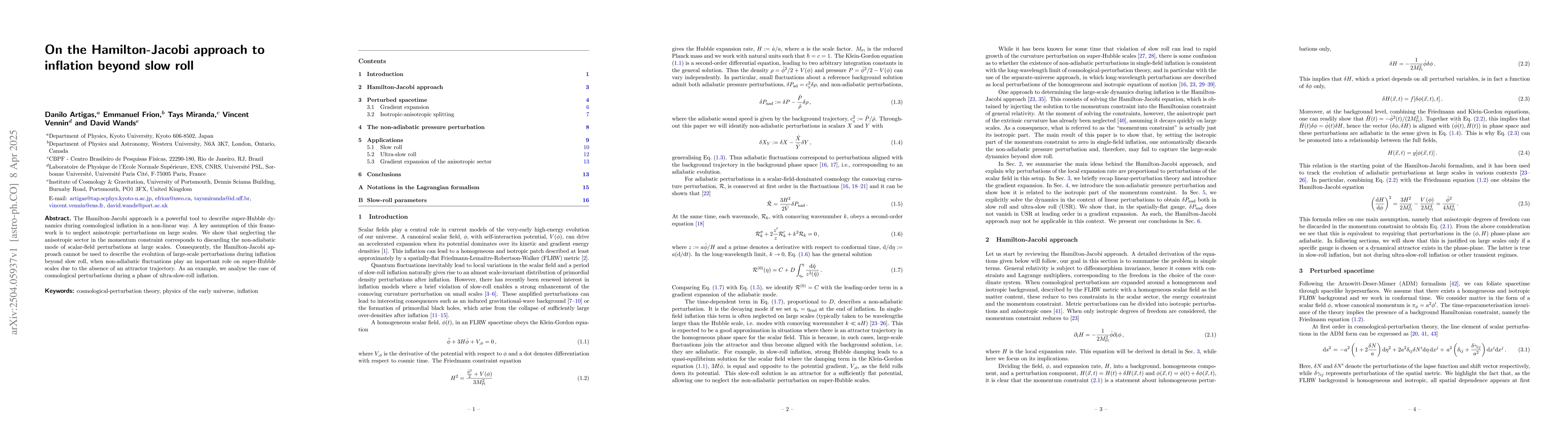 The paper presents a detailed analysis of the Hamilton-Jacobi formalism's applicability to cosmological inflation beyond slow roll, identifying its inability to describe non-adiabatic perturbations accurately on super-Hubble scales.