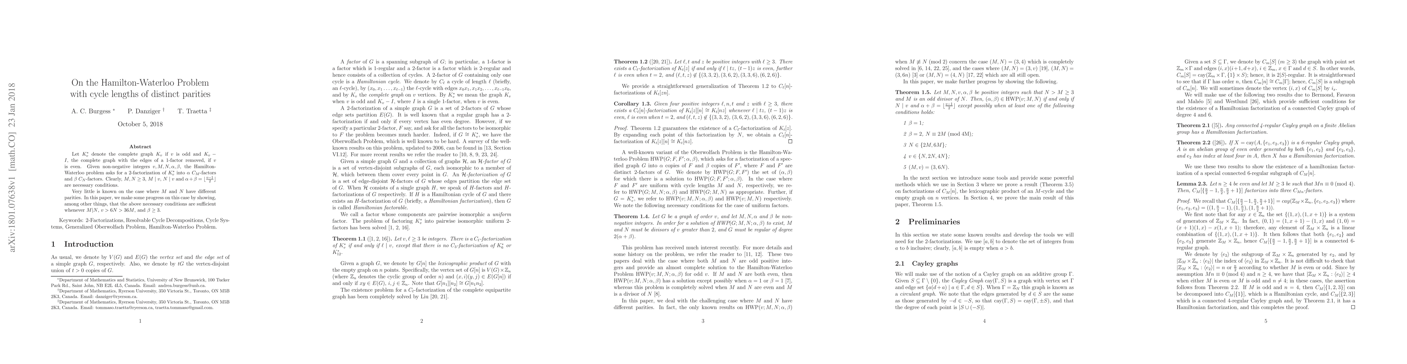 Let $K_v^*$ denote the complete graph $K_v$ if $v$ is odd and $K_v-I$, the complete graph with the edges of a 1-factor removed, if $v$ is even. Given non-negative integers $v, M, N, \alpha, \beta$, the Hamilton-Waterloo problem asks for a $2$-factorization of $K^*_v$ into $\alpha$ $C_M$-factors and $\beta$ $C_N$-factors. Clearly, $M,N\geq 3$, $M\mid v$, $N\mid v$ and $\alpha+\beta = \lfloor\frac{v-1}{2}\rfloor$ are necessary conditions. Very little is known on the case where $M$ and $N$ have different parities. In this paper, we make some progress on this case by showing, among other things, that the above necessary conditions are sufficient whenever $M|N$, $v>6N>36M$, and $\beta\geq 3$.