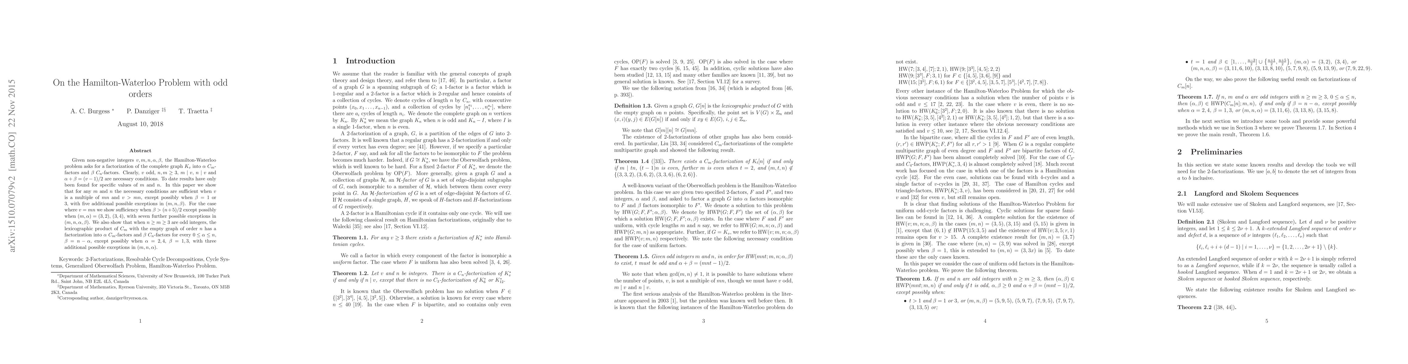 Given non-negative integers $v, m, n, \alpha, \beta$, the Hamilton-Waterloo problem asks for a factorization of the complete graph $K_v$ into $\alpha$ $C_m$-factors and $\beta$ $C_n$-factors. Clearly, $v$ odd, $n,m\geq 3$, $m\mid v$, $n\mid v$ and $\alpha+\beta = (v-1)/2$ are necessary conditions. To date results have only been found for specific values of $m$ and $n$. In this paper we show that for any $m$ and $n$ the necessary conditions are sufficient when $v$ is a multiple of $mn$ and $v>mn$, except possibly when $\beta=1$ or 3, with five additional possible exceptions in $(m,n,\beta)$. For the case where $v=mn$ we show sufficiency when $\beta > (n+5)/2$ except possibly when $(m,\alpha) = (3,2)$, $(3,4)$, with seven further possible exceptions in $(m,n,\alpha,\beta)$. We also show that when $n\geq m\geq 3$ are odd integers, the lexicographic product of $C_m$ with the empty graph of order $n$ has a factorization into $\alpha$ $C_m$-factors and $\beta$ $C_n$-factors for every $0\leq \alpha \leq n$, $\beta = n-\alpha$, except possibly when $\alpha= 2,4$, $\beta = 1, 3$, with three additional possible exceptions in $(m,n,\alpha)$.
