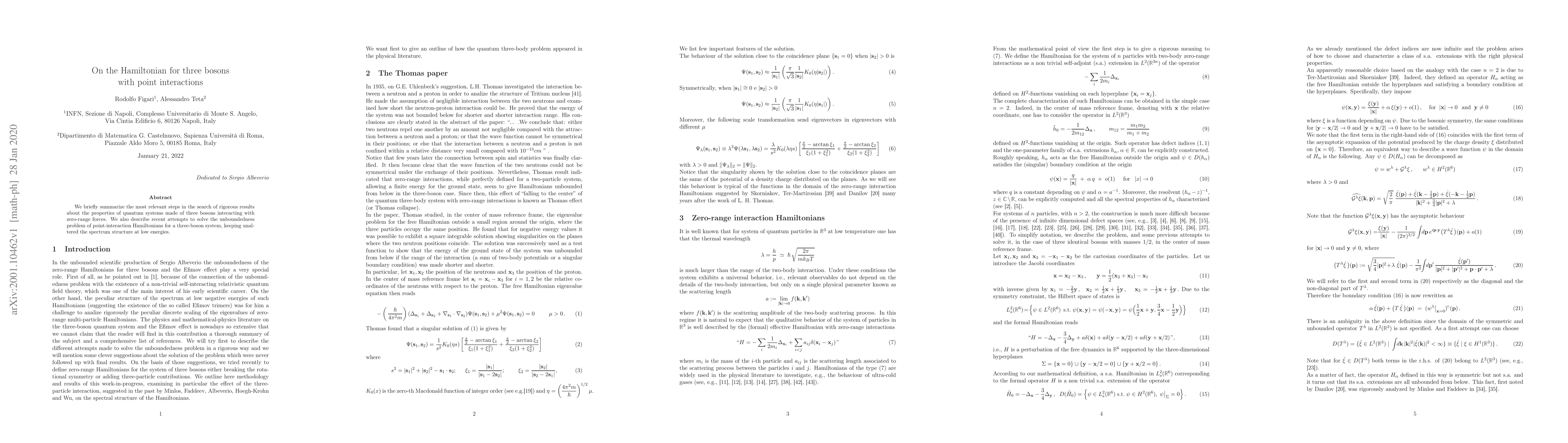 Researchers investigate the properties of quantum systems with three bosons interacting via zero-range forces, focusing on solving the unboundedness problem to preserve low-energy spectrum structure.
