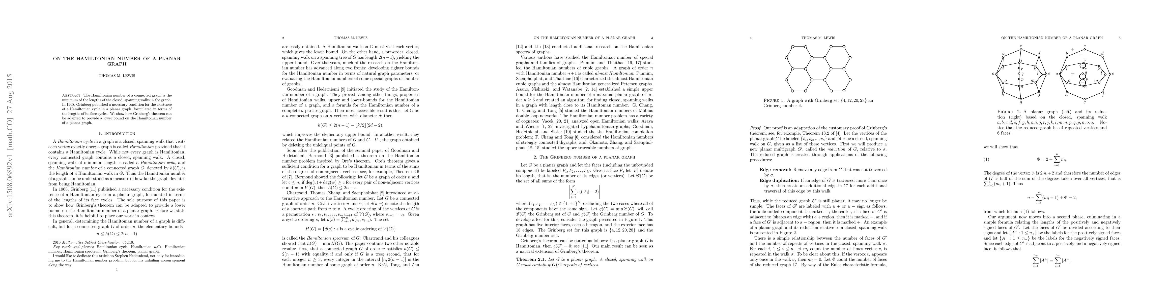 A study on planar graphs that provides a lower bound for their Hamiltonian number, which is the minimum length of a closed spanning walk in the graph.