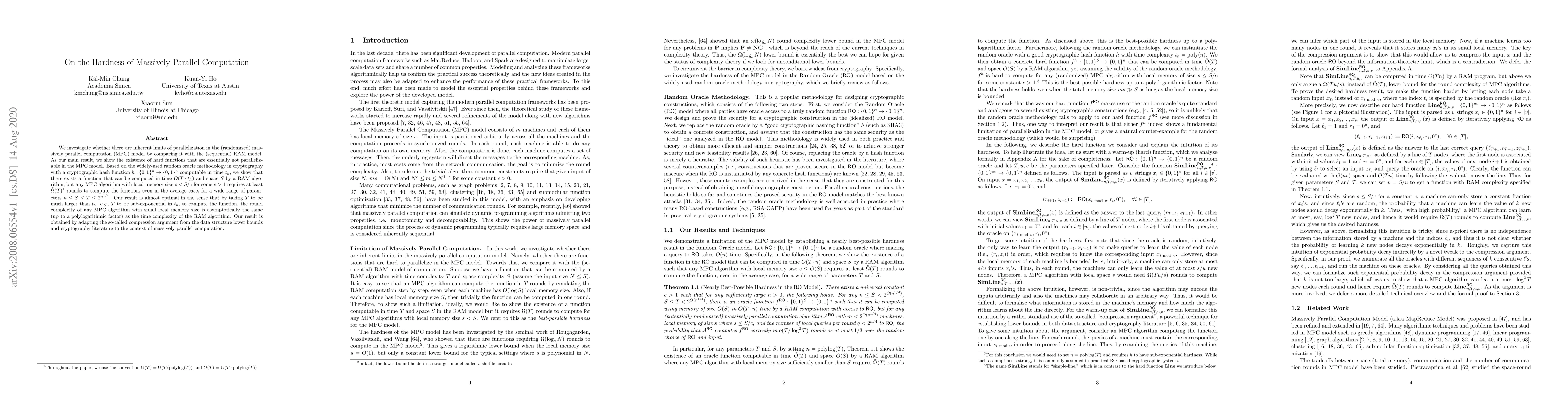 This paper explores the inherent limits of parallel computation in the MPC model compared to the sequential RAM model. It demonstrates the existence of functions that are hard to parallelize in MPC, showing that for certain parameters, any MPC algorithm with limited local memory requires significantly more rounds than a RAM algorithm to compute these functions.