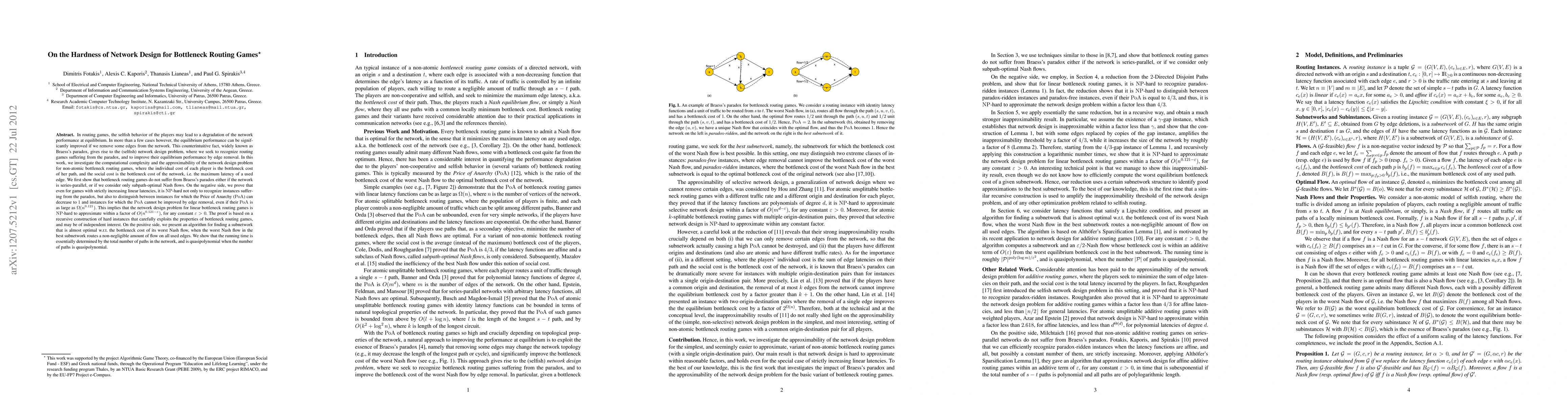 A randomized algorithm was used to solve the bottleneck routing game, which approximates the optimal solution in polynomial time.