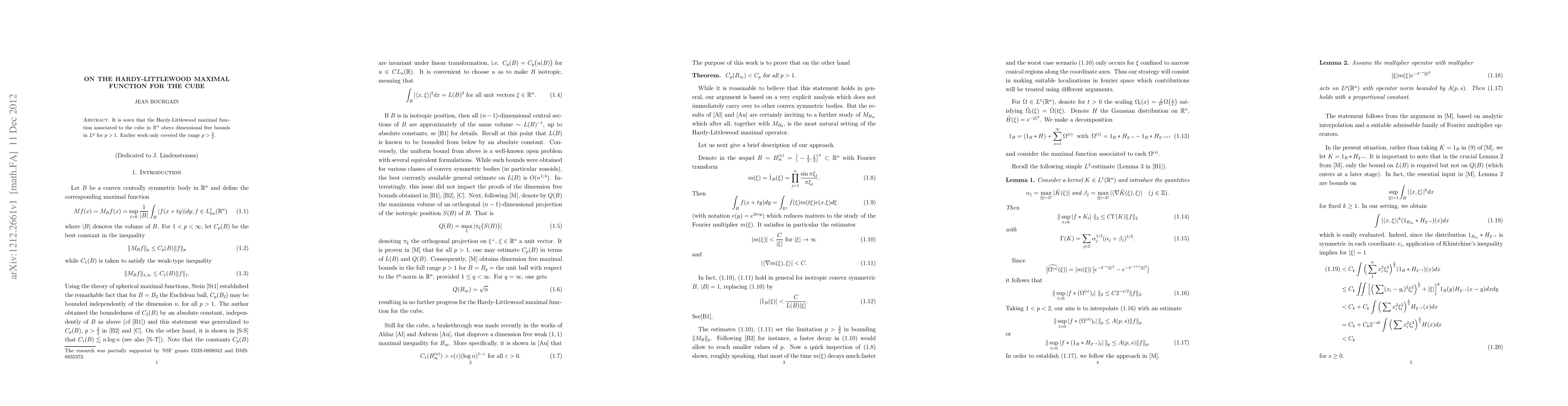 Summary: The paper demonstrates that the Hardy-Littlewood maximal function for the cube in $\mathbb{R}^n$ satisfies dimensional-free bounds in $L^p$ for $p > 1$, extending previous results that only covered $p > \frac{3}{2}$.