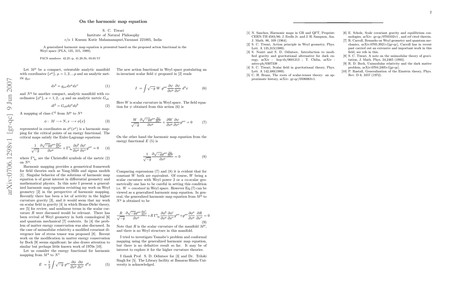A generalized harmonic map equation is presented based on the proposed action functional in the Weyl space (PLA, 135, 315, 1989).