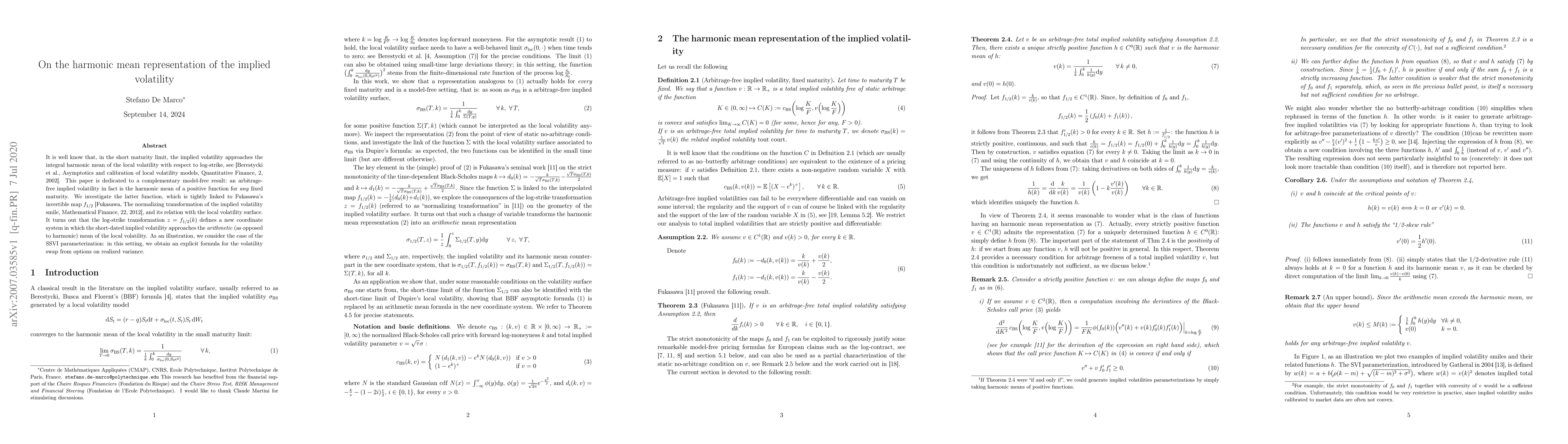 This paper demonstrates that arbitrage-free implied volatility is the harmonic mean of a positive function at any maturity, linked to Fukasawa's invertible map. It introduces a new coordinate system where short-dated implied volatility approaches the arithmetic mean of local volatility, illustrated through the SSVI parameterization.