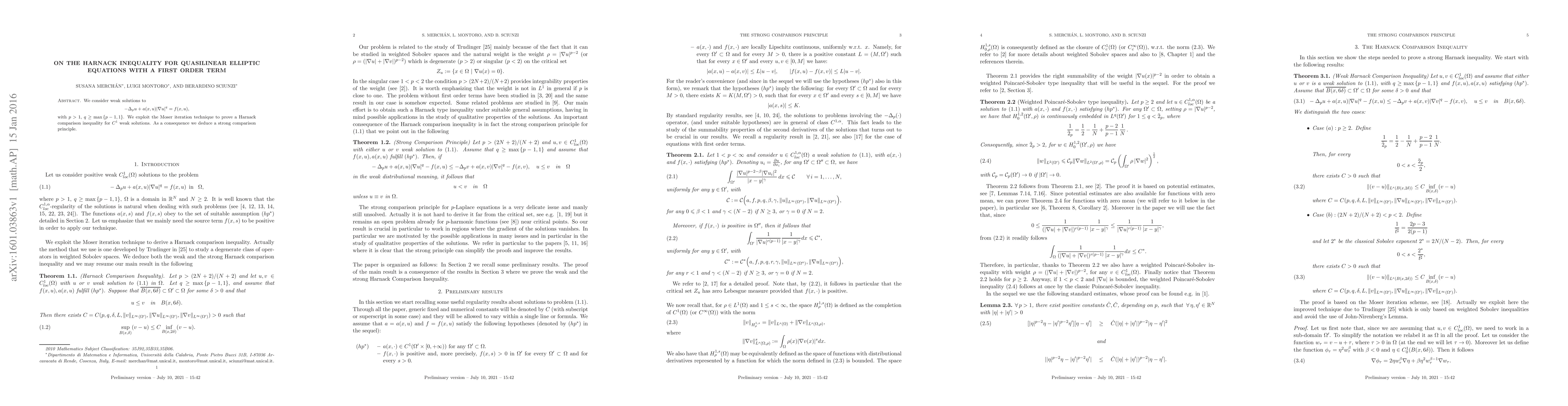 We consider weak solutions to $$-\Delta_pu+a(x,u)|\nabla u|^q=f(x,u),$$ with $p>1$, $q\geq\max\,\{p-1,1\}$. We exploit the Moser iteration technique to prove a Harnack comparison inequality for $C^1$ weak solutions. As a consequence we deduce a strong comparison principle.