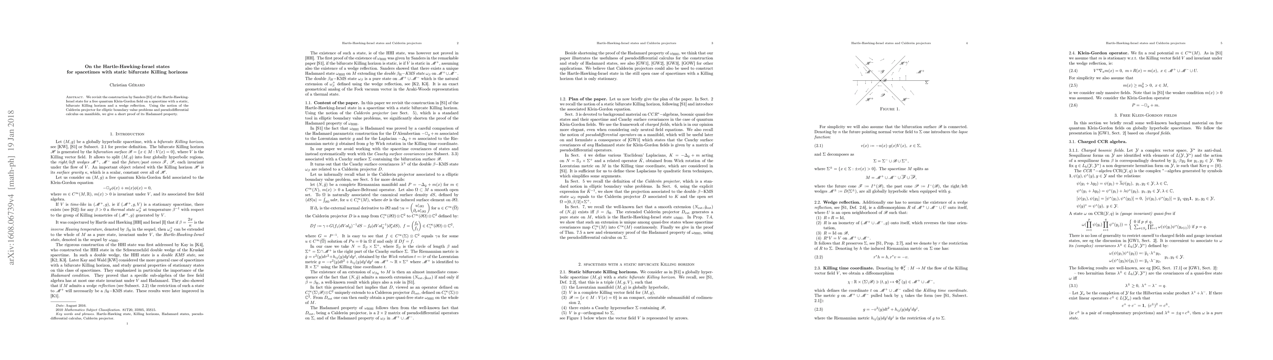 This paper revisits Sanders' construction of the Hartle-Hawking-Israel state for a quantum field on a static spacetime with a bifurcate Killing horizon, providing a concise proof of its Hadamard property using Calderón projectors and pseudodifferential calculus.