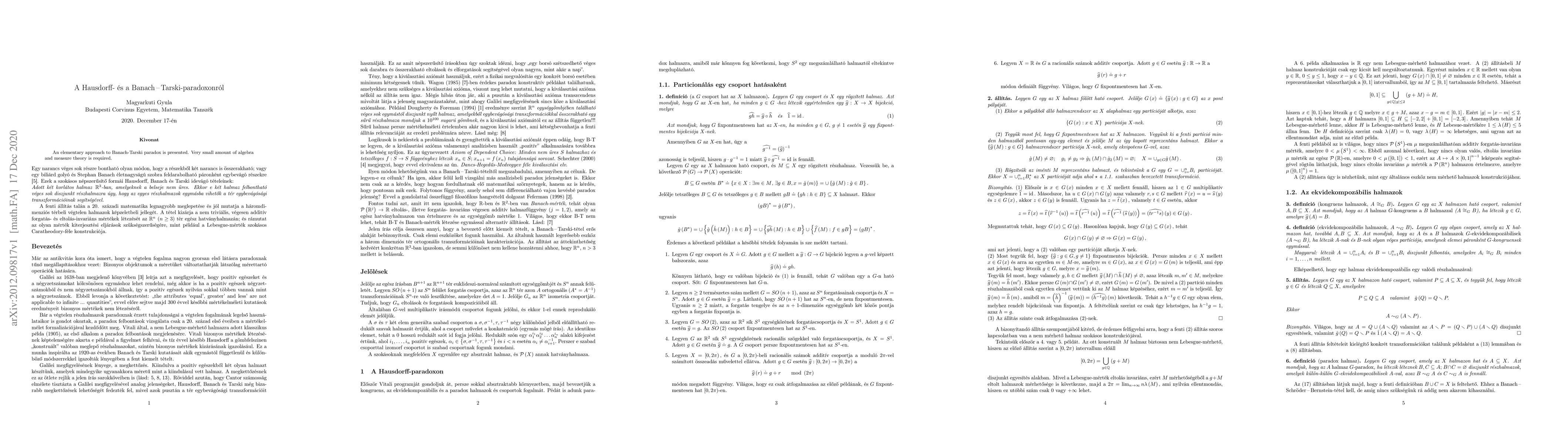 An elementary approach to Banach-Tarski paradox is presented. Very small amount of algebra and measure theory is required. -- A Hausdorff- \'es a Banach-Tarski paradoxon elemi megk\"ozel\'it\'ese.