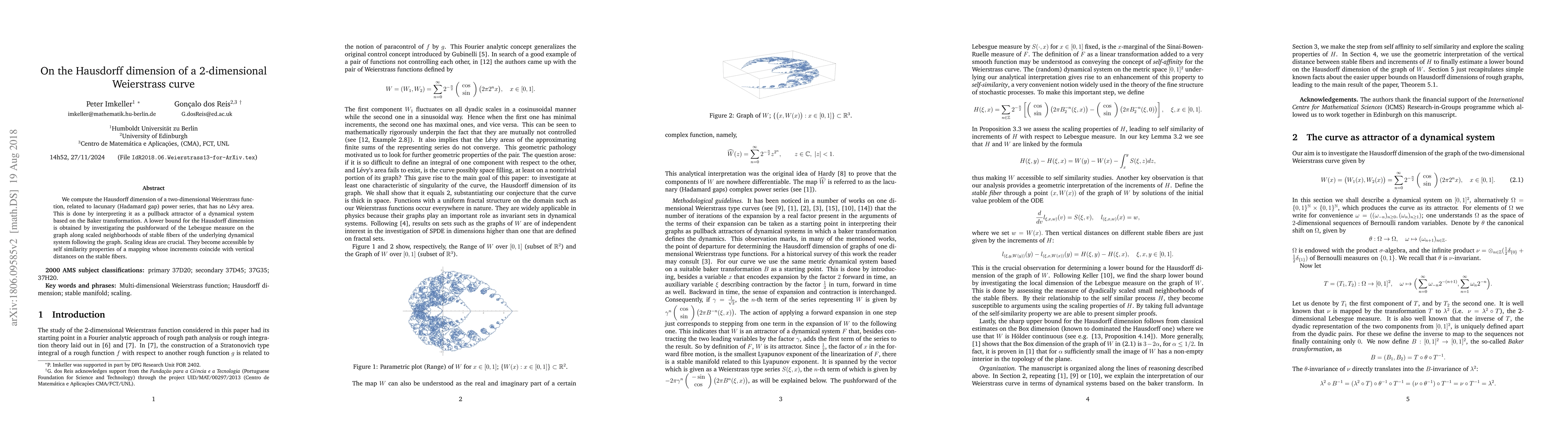 This paper computes the Hausdorff dimension of a 2-dimensional Weierstrass curve, which lacks an L\'evy area, by analyzing it as a pullback attractor of a dynamical system based on the Baker transformation. The authors derive a lower bound for the dimension through scaling and self-similarity properties of the underlying mapping.