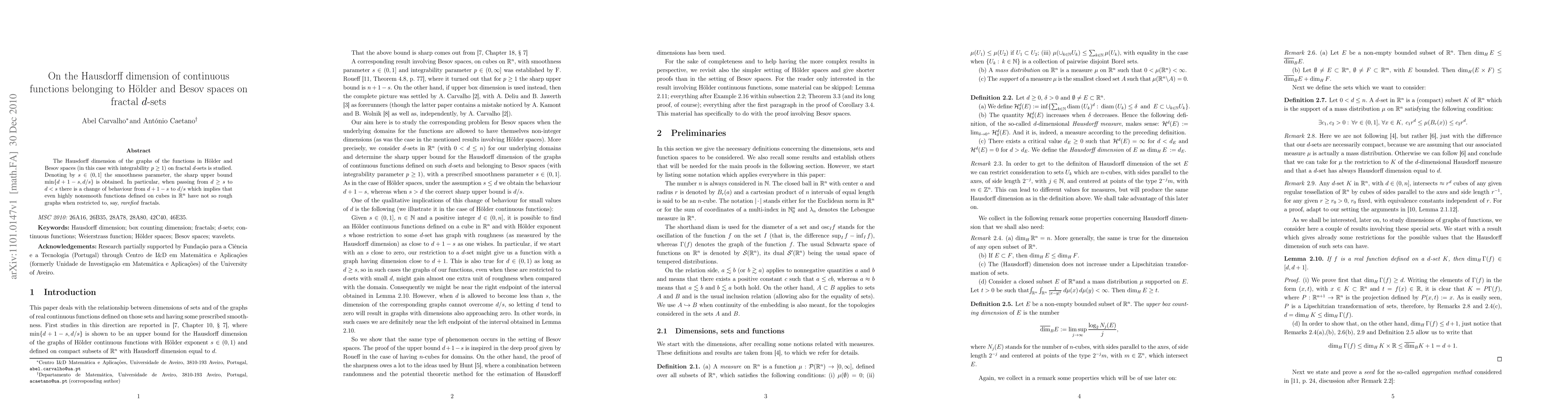 This paper examines the Hausdorff dimension of continuous functions in H\"older and Besov spaces on fractal d-sets, deriving a sharp upper bound of min{d+1-s,d/s} where s denotes the smoothness parameter. It highlights a behavioral shift when transitioning from d ≥ s to d < s, showing that nonsmooth functions on cubes in R^n can have less rough graphs on rarefied fractals.