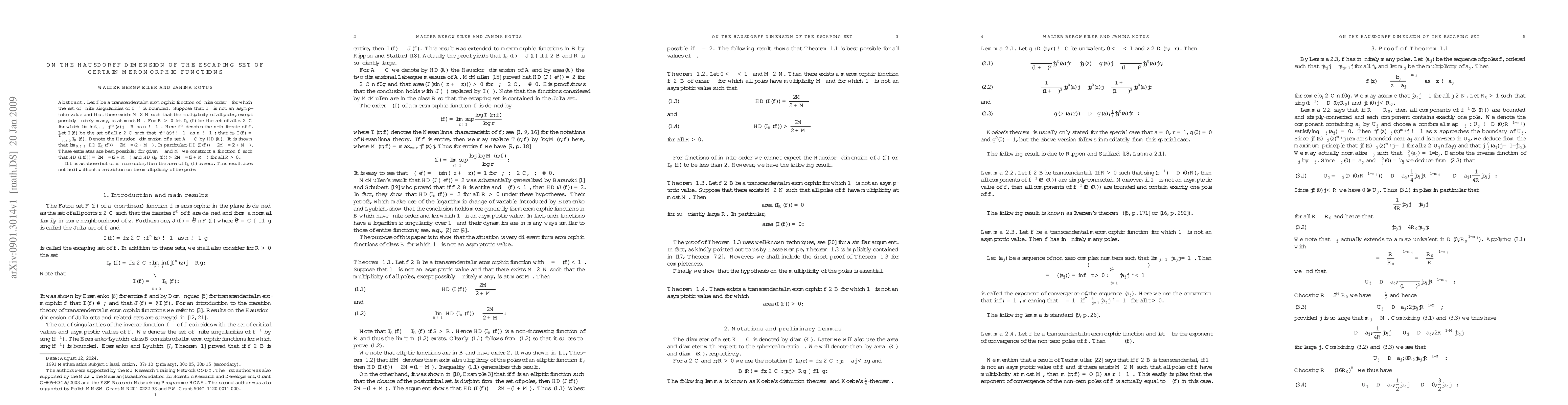 A study on the Hausdorff dimension of the escaping set of certain meromorphic functions shows that under specific conditions, the dimension is strictly smaller than 2, with a sharp bound in terms of function order and pole multiplicities. The area of the set can be zero if the function has infinite order but satisfies other restrictions.