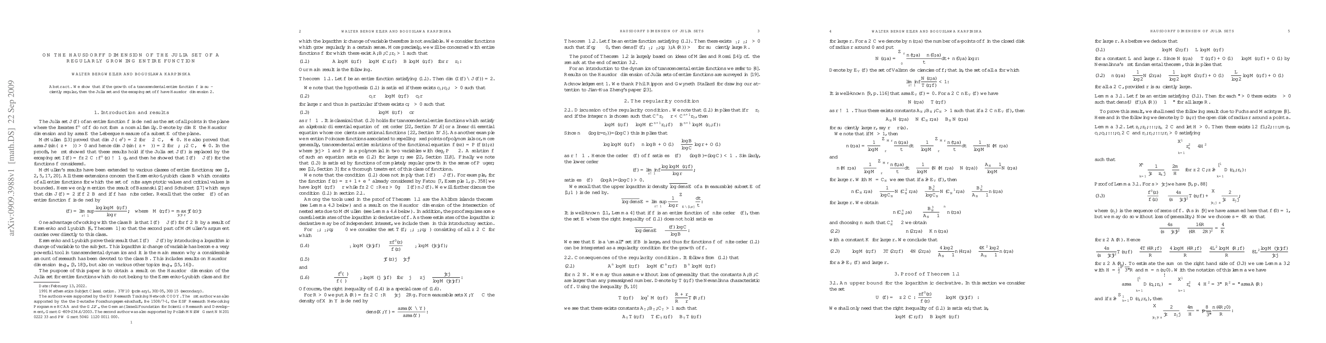 Summary: This paper demonstrates that for transcendental entire functions with sufficiently regular growth, both the Julia set and the escaping set exhibit a Hausdorff dimension of 2. The regularity of the function's growth is key to this result.