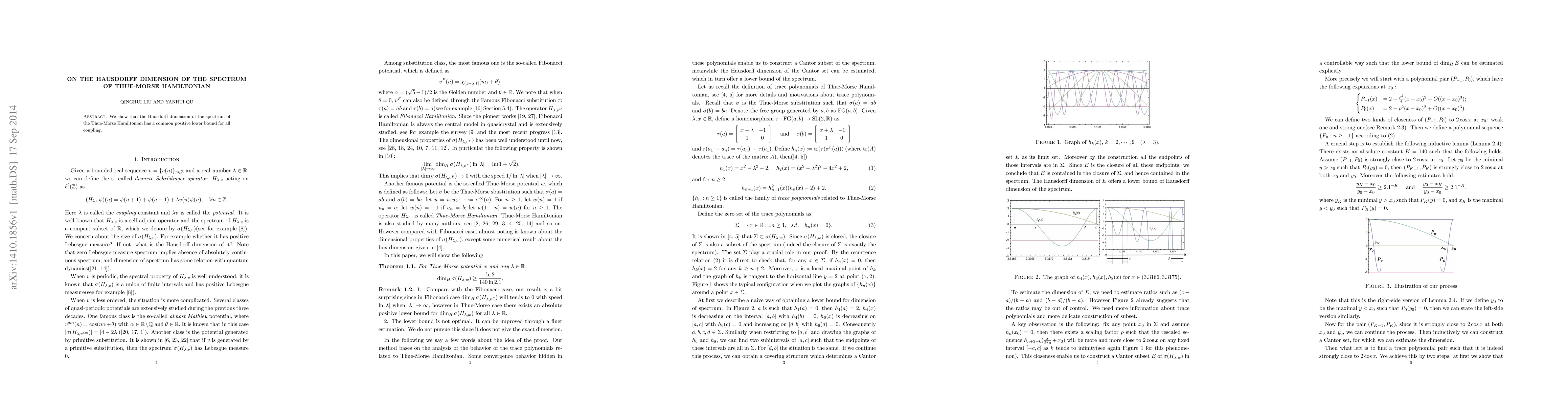 Research finds a common positive lower bound for the Hausdorff dimension of the spectrum of the Thue-Morse Hamiltonian across different couplings.