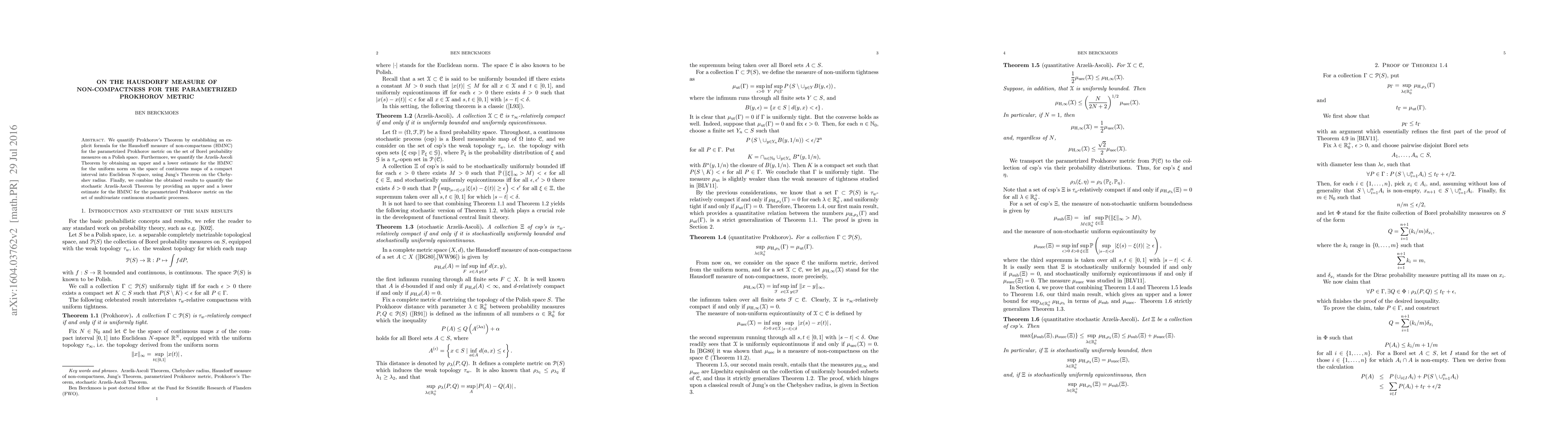 This paper establishes an explicit formula for the Hausdorff measure of non-compactness (HMNC) for the parametrized Prokhorov metric on Borel probability measures. It also provides upper and lower estimates for the HMNC for the uniform norm on continuous maps, combining these results to quantify the stochastic Arzel\`a-Ascoli Theorem for multivariate continuous stochastic processes.