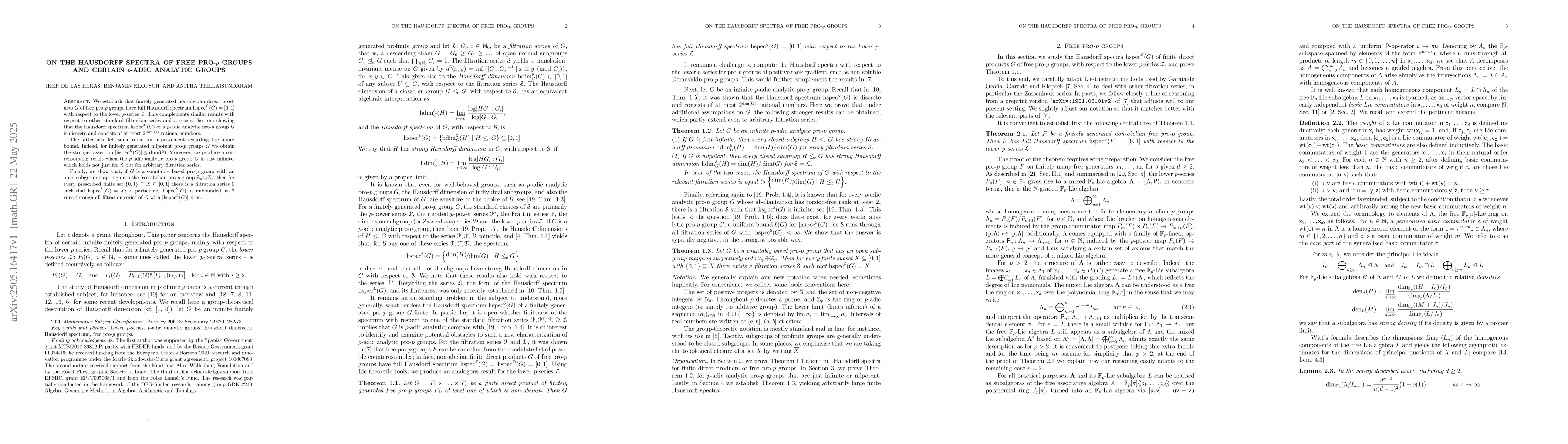 Researchers studied Hausdorff spectra of free pro-$p$ groups and $p$-adic analytic groups, finding that finitely generated non-abelian direct products have full Hausdorff spectrum with respect to the lower $p$-series, and finitely generated nilpotent groups have a cardinality at most equal to their analytic dimension.