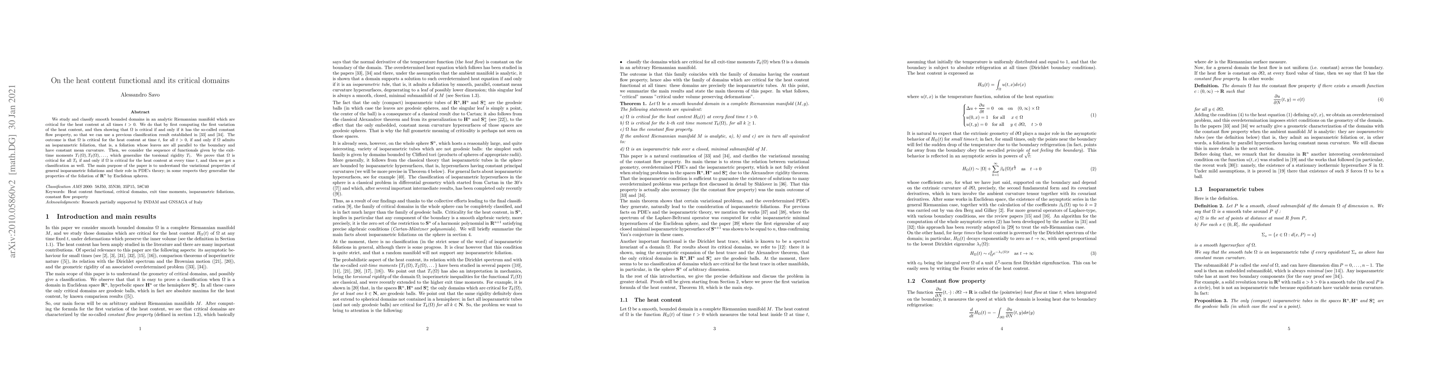 We study and classify smooth bounded domains in an analytic Riemannian manifold which are critical for the heat content at all times t>0. We do that by first computing the first variation of the heat content, and then showing that a domain is critical if and only if it has the so-called constant flow property, so that we can use a previous classification result established by the author. The outcome is that a domain is critical for the heat content at all times if and only if it admits an isoparametric foliation, that is, a foliation whose leaves are all parallel to the boundary and have constant mean curvature. Then, we consider the sequence of functionals given by the exit-time moments, which generalize the torsional rigidity. We prove that a domain is critical for all exit time moments if and only it is critical for the heat content at all times, and then we get a classification as well. The main purpose of the paper is to understand the variational properties of general isoparametric foliations and their role in PDE's theory; in some respect isoparametric foliations generalize the properties of the foliation of Euclidean space by round spheres.