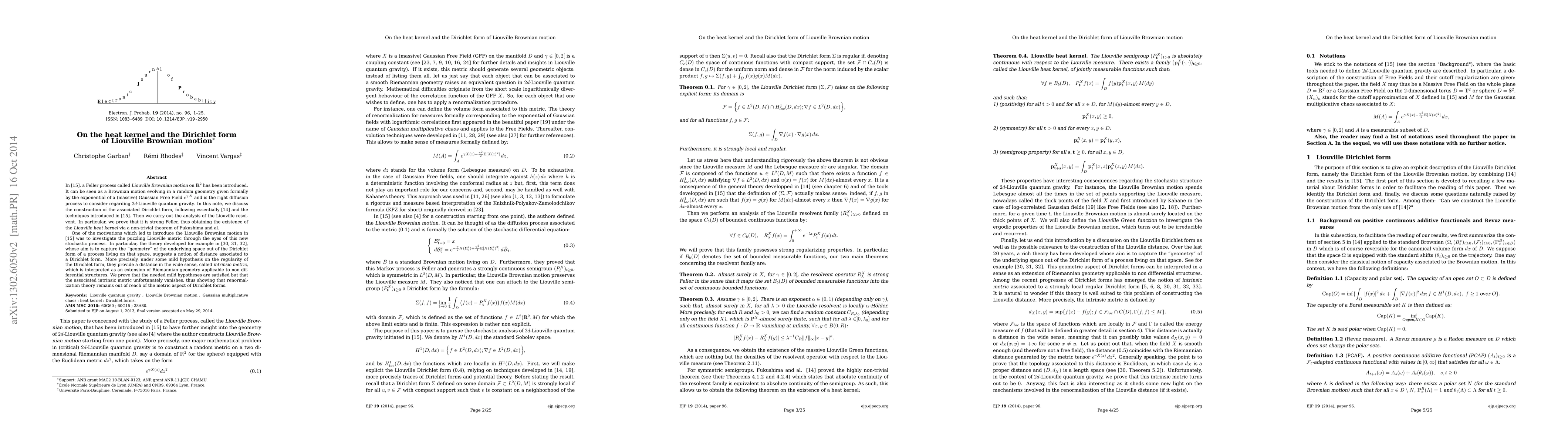 In \cite{GRV}, a Feller process called Liouville Brownian motion on $\R^2$ has been introduced. It can be seen as a Brownian motion evolving in a random geometry given formally by the exponential of a (massive) Gaussian Free Field $e^{\gamma X}$ and is the right diffusion process to consider regarding 2d-Liouville quantum gravity. In this note, we discuss the construction of the associated Dirichlet form, following essentially \cite{fuku} and the techniques introduced in \cite{GRV}. Then we carry out the analysis of the Liouville resolvent. In particular, we prove that it is strong Feller, thus obtaining the existence of the Liouville heat kernel via a non-trivial theorem of Fukushima and al. One of the motivations which led to introduce the Liouville Brownian motion in \cite{GRV} was to investigate the puzzling Liouville metric through the eyes of this new stochastic process. One possible approach was to use the theory developed for example in \cite{stollmann,sturm1,sturm2}, whose aim is to capture the "geometry" of the underlying space out of the Dirichlet form of a process living on that space. More precisely, under some mild hypothesis on the regularity of the Dirichlet form, they provide an intrinsic metric which is interpreted as an extension of Riemannian geometry applicable to non differential structures. We prove that the needed mild hypotheses are satisfied but that the associated intrinsic metric unfortunately vanishes, thus showing that renormalization theory remains out of reach of the metric aspect of Dirichlet forms.