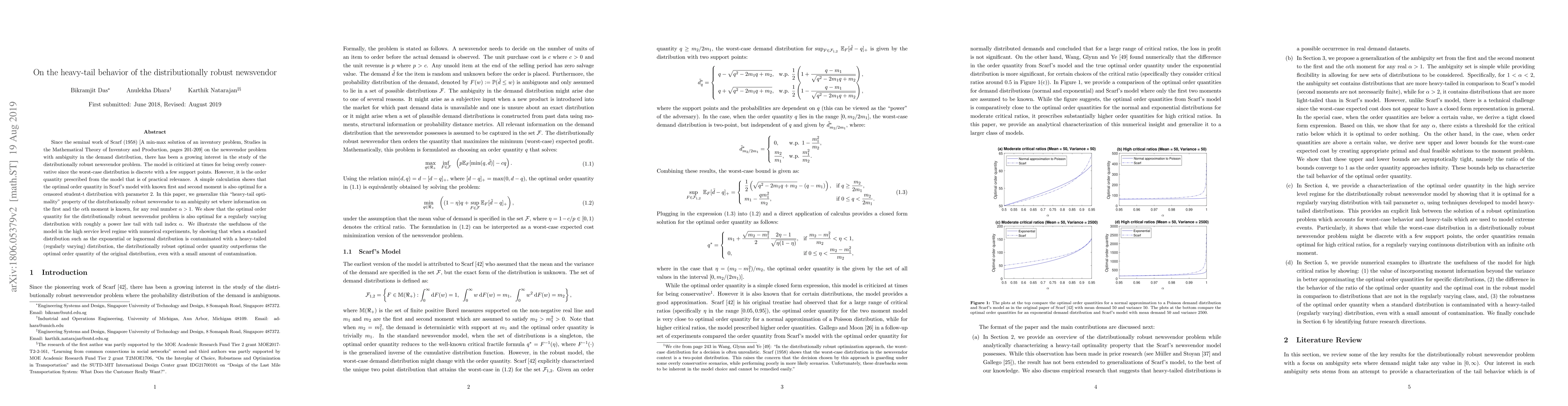 Since the seminal work of Scarf (1958) [A min-max solution of an inventory problem, Studies in the Mathematical Theory of Inventory and Production, pages 201-209] on the newsvendor problem with ambiguity in the demand distribution, there has been a growing interest in the study of the distributionally robust newsvendor problem. The model is criticized at times for being overly conservative since the worst-case distribution is discrete with a few support points. However, it is the order quantity prescribed from the model that is of practical relevance. A simple calculation shows that the optimal order quantity in Scarf's model with known first and second moment is also optimal for a censored student-t distribution with parameter 2. In this paper, we generalize this "heavy-tail optimality" property of the distributionally robust newsvendor to an ambiguity set where information on the first and the $\alpha$th moment is known, for any real number $\alpha > 1$. We show that the optimal order quantity for the distributionally robust newsvendor problem is also optimal for a regularly varying distribution with roughly a power law tail with tail index $\alpha$. We illustrate the usefulness of the model in the high service level regime with numerical experiments, by showing that when a standard distribution such as the exponential or lognormal distribution is contaminated with a heavy-tailed (regularly varying) distribution, the distributionally robust optimal order quantity outperforms the optimal order quantity of the original distribution, even with a small amount of contamination.