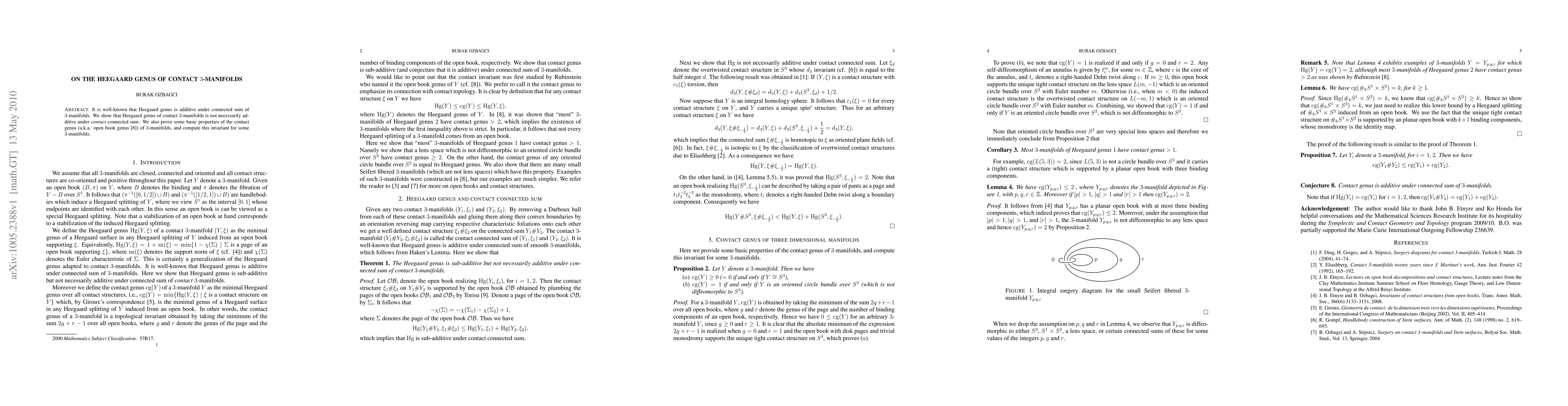 This paper demonstrates that the Heegaard genus of contact 3-manifolds does not adhere to the additivity property under contact connected sum, contrasting with the behavior of general 3-manifolds. It also explores fundamental properties of the contact genus and computes the invariant for specific 3-manifolds.