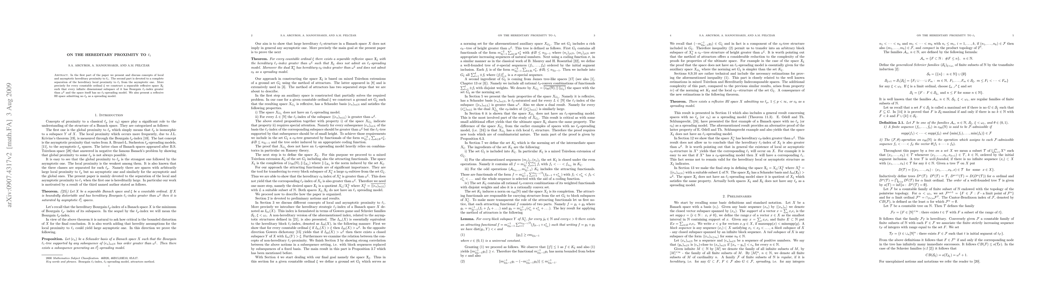 The paper introduces novel methods for separating hereditary local proximity to $\ell_1$ from asymptotic proximity, and constructs reflexive spaces with specific properties related to Bourgain's $\ell_1$-index and the absence of certain spreading models.