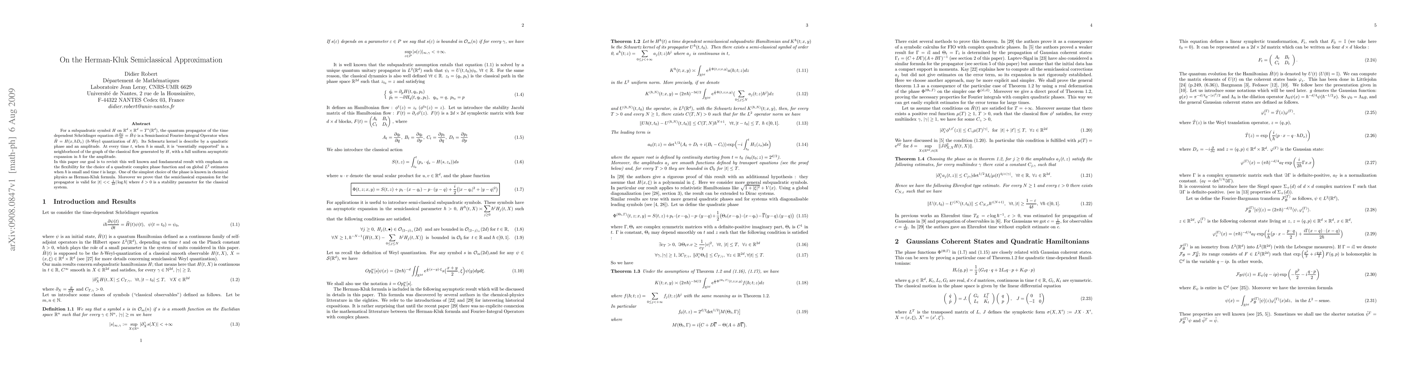 The paper revisits the Semiclassical Fourier-Integral Operator for a subquadratic symbol H on $ R^d imes R^d$, focusing on a quadratic complex phase function known as the Herman-Kluk formula and global $L^2$ estimates, with implications for quantum propagator validity in small $ hbar$ and large time $t$. The key finding is that the expansion holds for $| t | << rac{1}{4 delta}| log hbar|$ where $ delta > 0$ is a stability parameter.