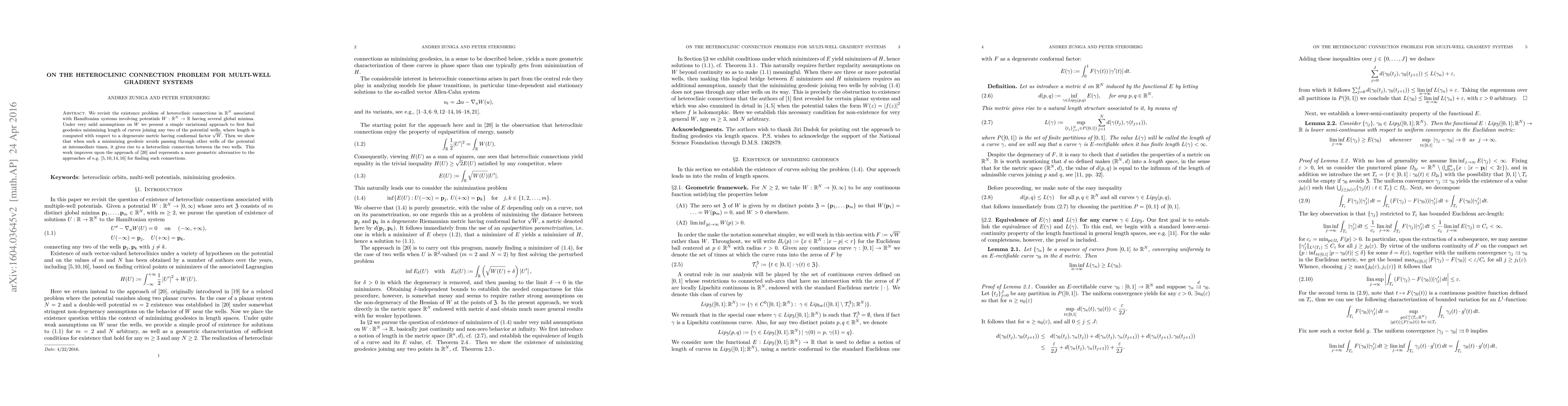 This paper explores the existence of heteroclinic connections in multi-well gradient systems using a variational approach. It finds geodesics minimizing the length between potential wells under a conformal metric, demonstrating that these geodesics can yield heteroclinic connections if they avoid intermediate wells.
