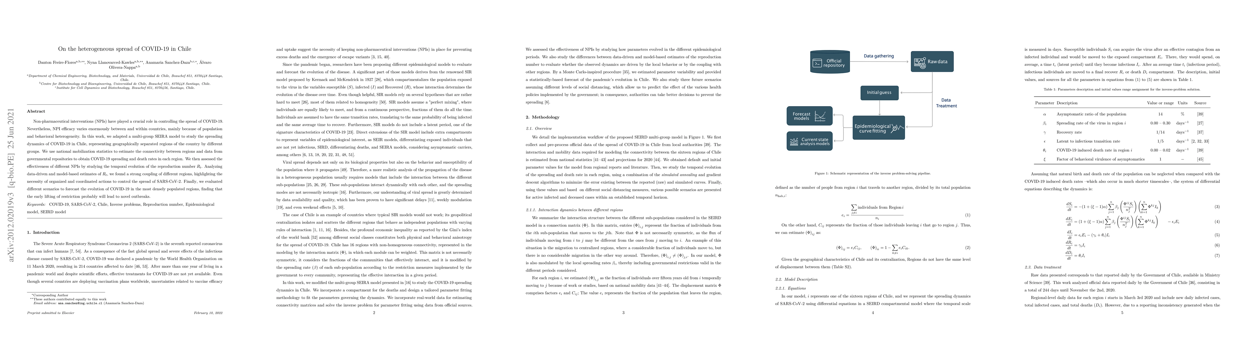 Researchers studied COVID-19 spread in Chile using a multi-group model, finding strong regional connections that require coordinated actions to control the outbreak. They also forecasted that early lifting of restrictions would lead to new outbreaks in densely populated areas.