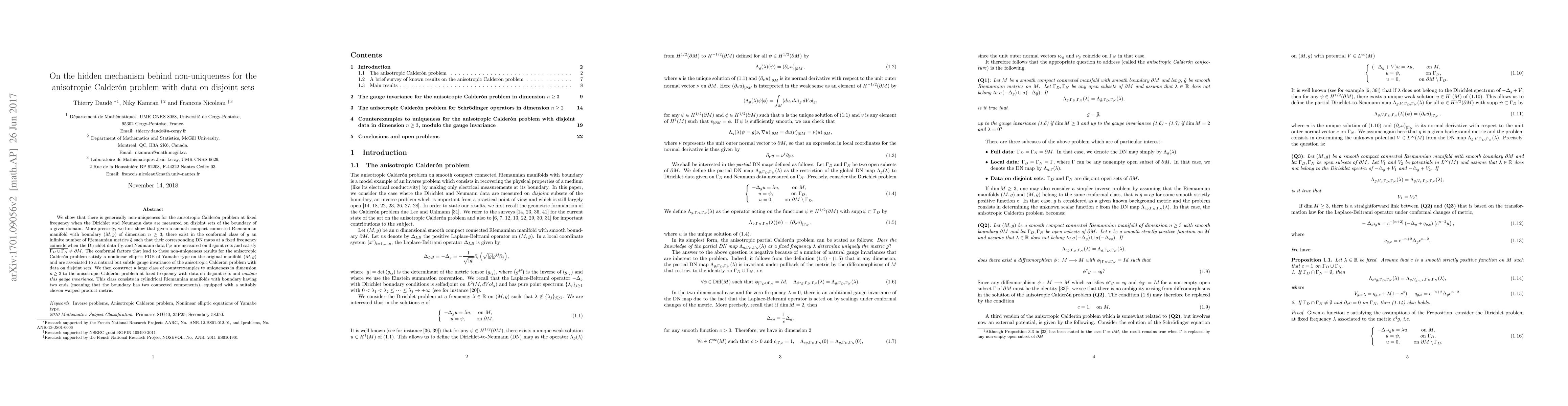 This paper demonstrates non-uniqueness in the anisotropic Calderón problem at fixed frequency when Dirichlet and Neumann data are measured on disjoint boundary sets. It constructs an infinite number of conformal metrics leading to coinciding DN maps, revealing a subtle gauge invariance and providing counterexamples in higher dimensions using cylindrical manifolds with specific metrics.