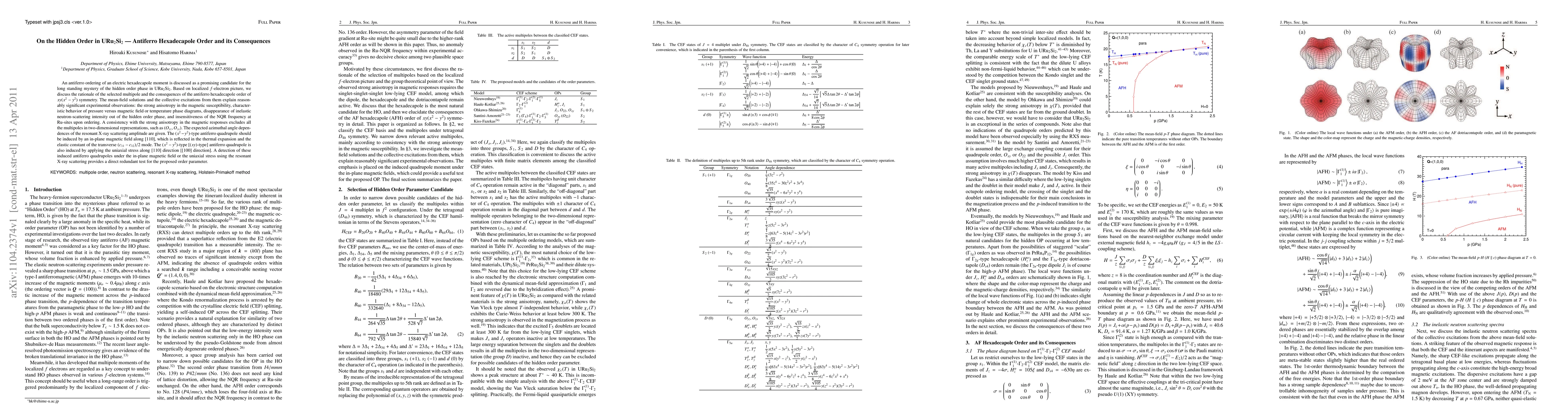 An antiferro ordering of an electric hexadecapole moment is discussed as a promising candidate for the long standing mystery of the hidden order phase in URu$_{2}$Si$_{2}$. Based on localized $f$-electron picture, we discuss the rationale of the selected multipole and the consequences of the antiferro hexadecapole order of $xy(x^{2}-y^{2})$ symmetry. The mean-field solutions and the collective excitations from them explain reasonably significant experimental observations: the strong anisotropy in the magnetic susceptibility, characteristic behavior of pressure versus magnetic field or temperature phase diagrams, disappearance of inelastic neutron-scattering intensity out of the hidden order phase, and insensitiveness of the NQR frequency at Ru-sites upon ordering. A consistency with the strong anisotropy in the magnetic responses excludes all the multipoles in two-dimensional representations, such as $(O_{yz},O_{zx})$. The expected azimuthal angle dependences of the resonant X-ray scattering amplitude are given. The $(x^{2}-y^{2})$-type antiferro quadrupole should be induced by an in-plane magnetic field along $[110]$, which is reflected in the thermal expansion and the elastic constant of the transverse $(c_{11}-c_{12})/2$ mode. The $(x^{2}-y^{2})$-type [$(xy)$-type] antiferro quadrupole is also induced by applying the uniaxial stress along $[110]$ direction [$[100]$ direction]. A detection of these induced antiferro quadrupoles under the in-plane magnetic field or the uniaxial stress using the resonant X-ray scattering provides a direct redundant test for the proposed order parameter.