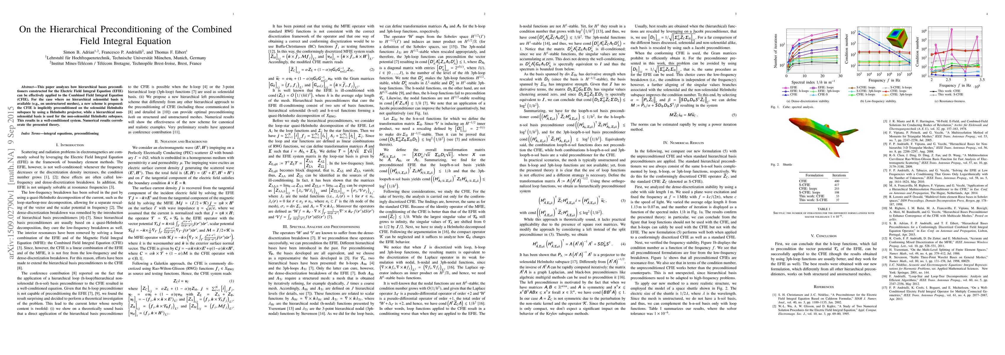 This paper analyzes how hierarchical bases preconditioners constructed for the Electric Field Integral Equation (EFIE) can be effectively applied to the Combined Field Integral Equation (CFIE). For the case where no hierarchical solenoidal basis is available (e.g., on unstructured meshes), a new scheme is proposed: the CFIE is implicitly preconditioned on the solenoidal Helmholtz subspace by using a Helmholtz projector, while a hierarchical non-solenoidal basis is used for the non-solenoidal Helmholtz subspace. This results in a well-conditioned system. Numerical results corroborate the presented theory.