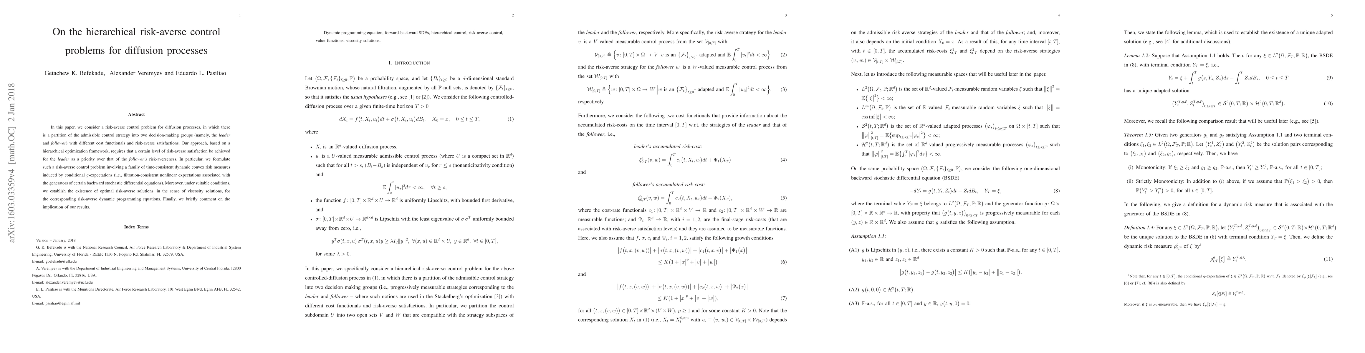 In this paper, we consider a risk-averse control problem for diffusion processes, in which there is a partition of the admissible control strategy into two decision-making groups (namely, the {\it leader} and {\it follower}) with different cost functionals and risk-averse satisfactions. Our approach, based on a hierarchical optimization framework, requires that a certain level of risk-averse satisfaction be achieved for the {\it leader} as a priority over that of the {\it follower's} risk-averseness. In particular, we formulate such a risk-averse control problem involving a family of time-consistent dynamic convex risk measures induced by conditional $g$-expectations (i.e., filtration-consistent nonlinear expectations associated with the generators of certain backward stochastic differential equations). Moreover, under suitable conditions, we establish the existence of optimal risk-averse solutions, in the sense of viscosity solutions, for the corresponding risk-averse dynamic programming equations. Finally, we briefly comment on the implication of our results.
