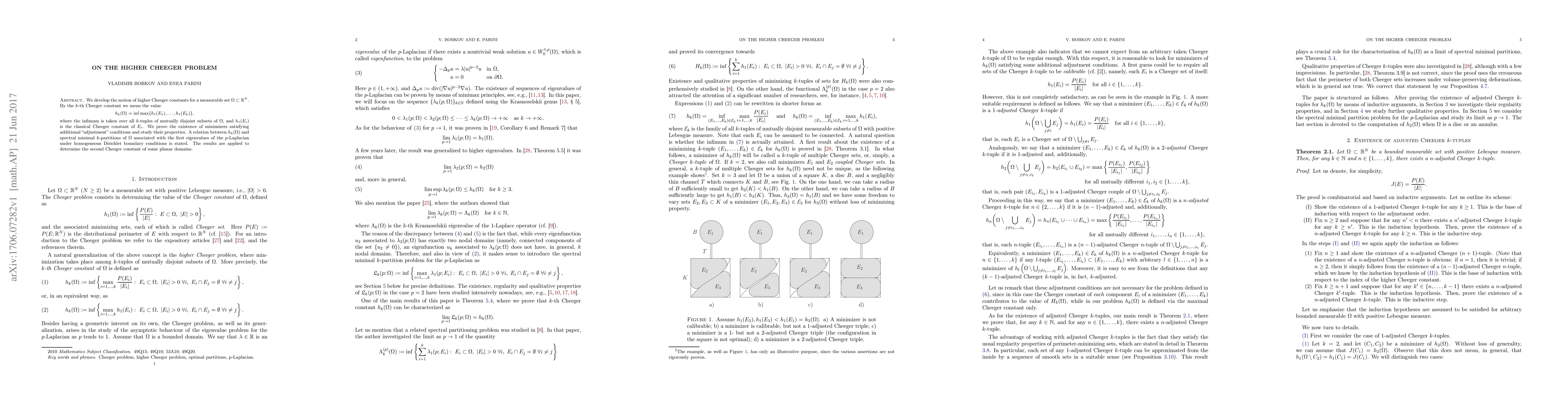 This paper introduces higher Cheeger constants for measurable sets in $\mathbb{R}^N$ and proves the existence of minimizers with specific "adjustment" conditions. It also explores the connection between $h_k(\Omega)$ and spectral minimal $k$-partitions linked to the $p$-Laplacian, and applies these findings to determine the second Cheeger constant for certain planar domains.