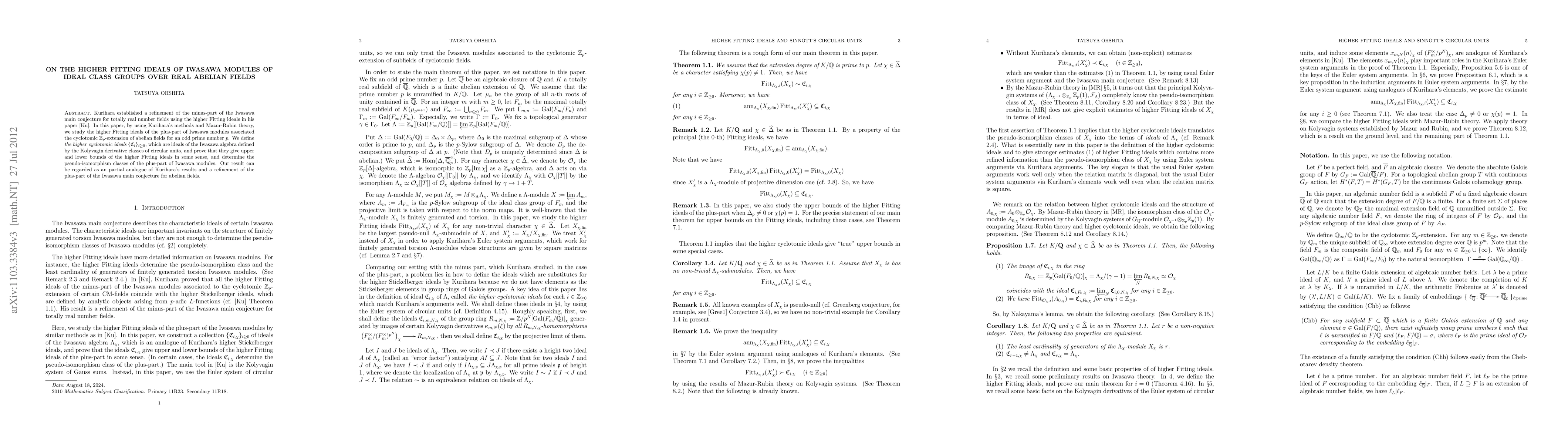 This paper refines the plus-part of the Iwasawa main conjecture for abelian fields using higher Fitting ideals and Kolyvagin derivative classes, establishing new cyclotomic ideals C_i that provide bounds for these ideals and determining the pseudo-isomorphism classes of the associated Iwasawa modules.