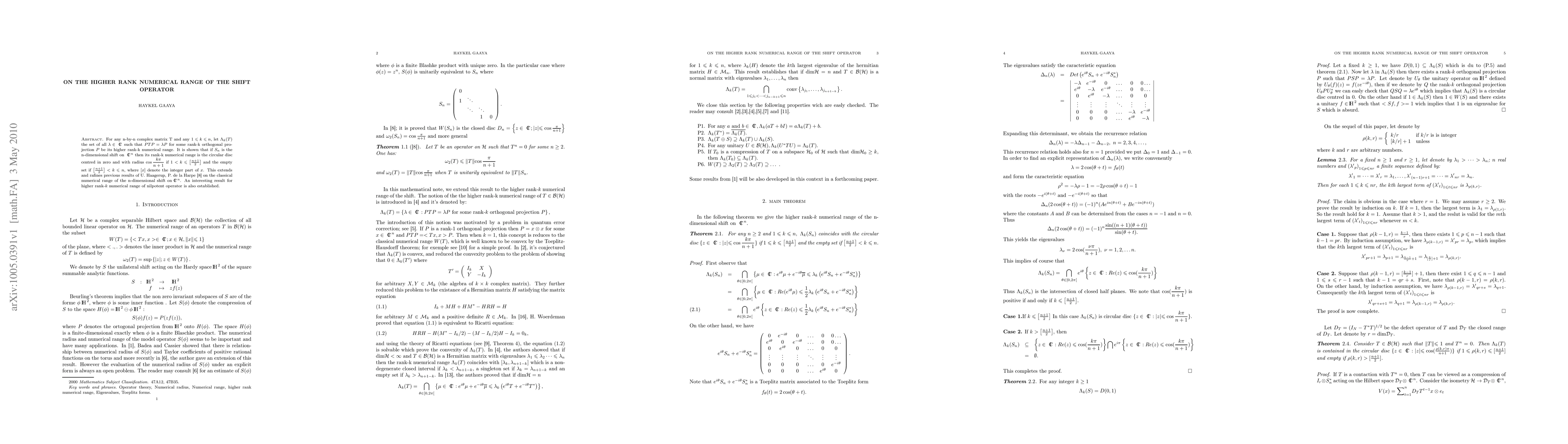 The n-dimensional shift on a complex matrix has a specific numerical range for higher rank projections, described as a circular disc with varying radius depending on the projection's rank and dimensionality.