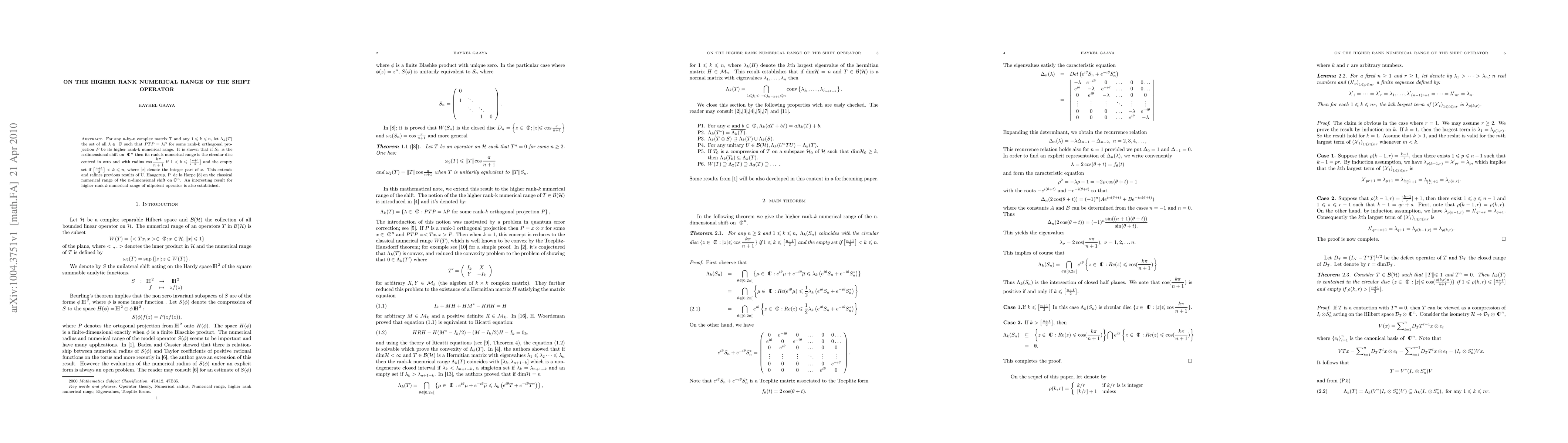 The study of higher rank numerical ranges of shift operators reveals a circular disc-shaped region for certain values of k, with radius dependent on n, and an empty set for others. This extends previous results on the classical numerical range of the shift operator.