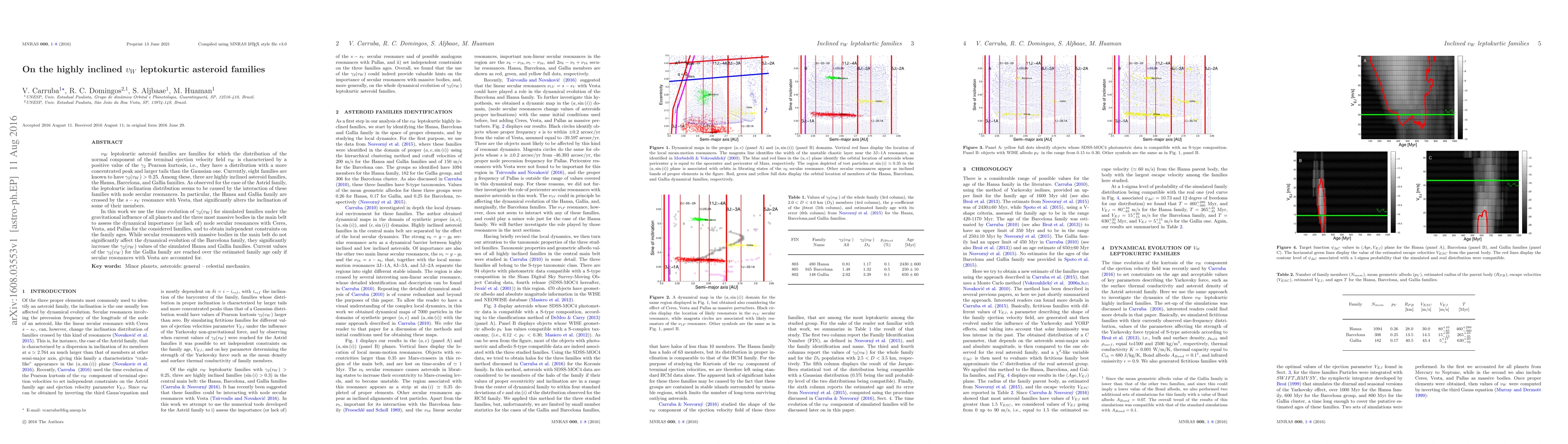 This paper investigates the dynamical evolution of highly inclined $v_W$ leptokurtic asteroid families, focusing on the Hansa, Barcelona, and Gallia families. It finds that node secular resonances, particularly with Vesta, significantly influence the inclination distribution and ${\gamma}_2(v_W)$ values, providing constraints on the families' ages.