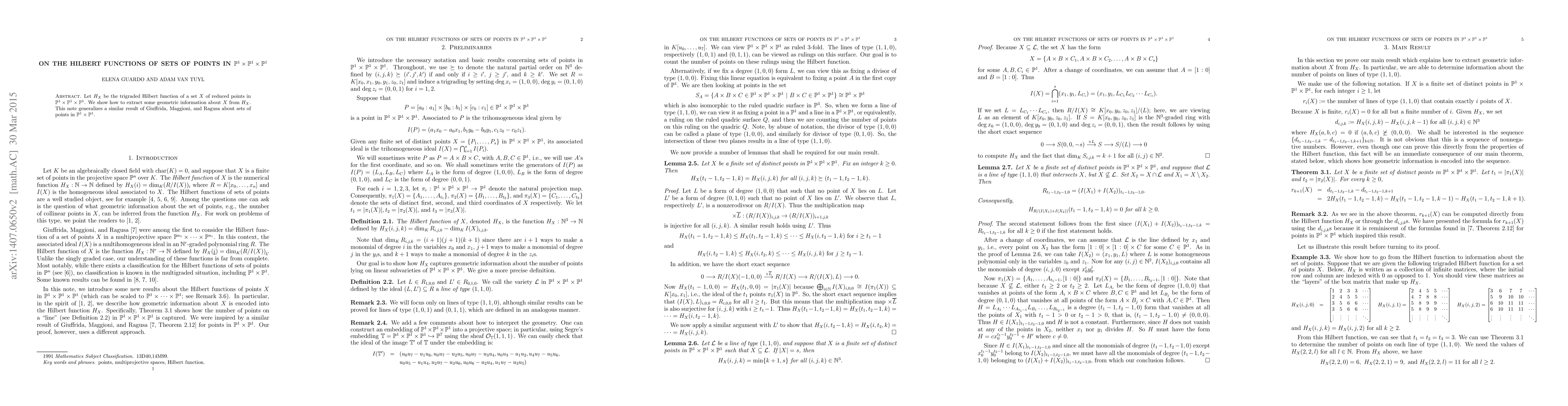 Let H_X be the trigraded Hilbert function of a set X of reduced points in P^1 x P^1 x P^1. We show how to extract some geometric information about X from H_X. This note generalizes a similar result of Giuffrida, Maggioni, and Ragusa about sets of points in P^1 x P^1.