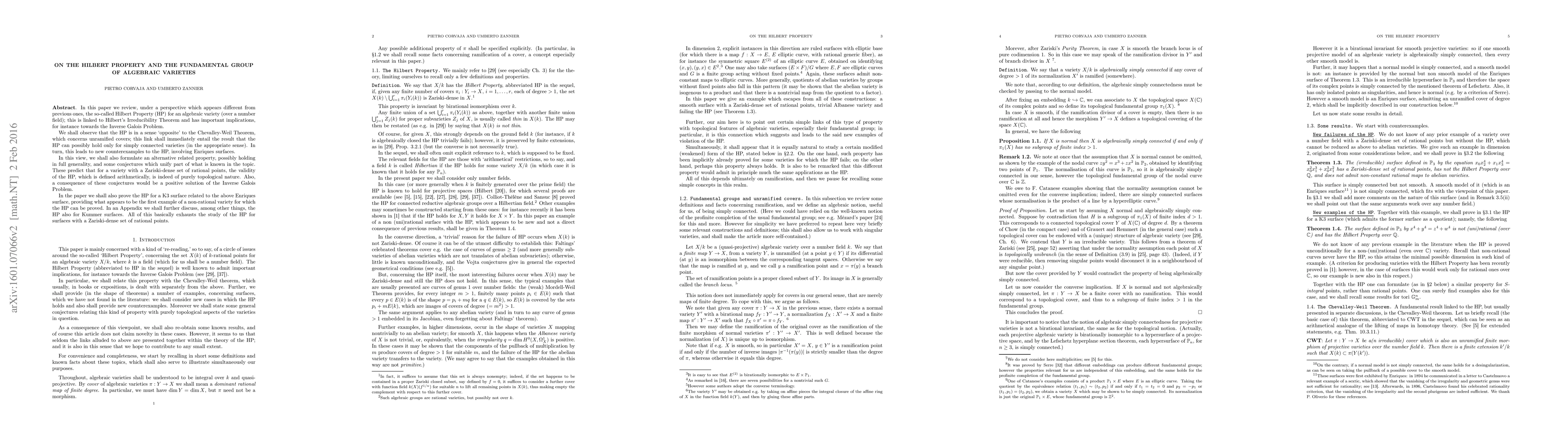 We review, under a perspective which appears different from previous ones, the so-called Hilbert Property (HP) for an algebraic variety (over a number field); this is linked to Hilbert's Irreducibility Theorem and has important implications, for instance towards the Inverse Galois Problem. We shall observe that the HP is in a sense `opposite' to the Chevalley-Weil Theorem, which concerns unramified covers; this link shall immediately entail the result that the HP can possibly hold only for simply connected varieties (in the appropriate sense). In turn, this leads to new counterexamples to the HP, involving Enriques surfaces. We also prove the HP for a K3 surface related to the above Enriques surface, providing what appears to be the first example of a non-rational variety for which the HP can be proved. We also formulate some general conjectures relating the HP with the topology of algebraic varieties.