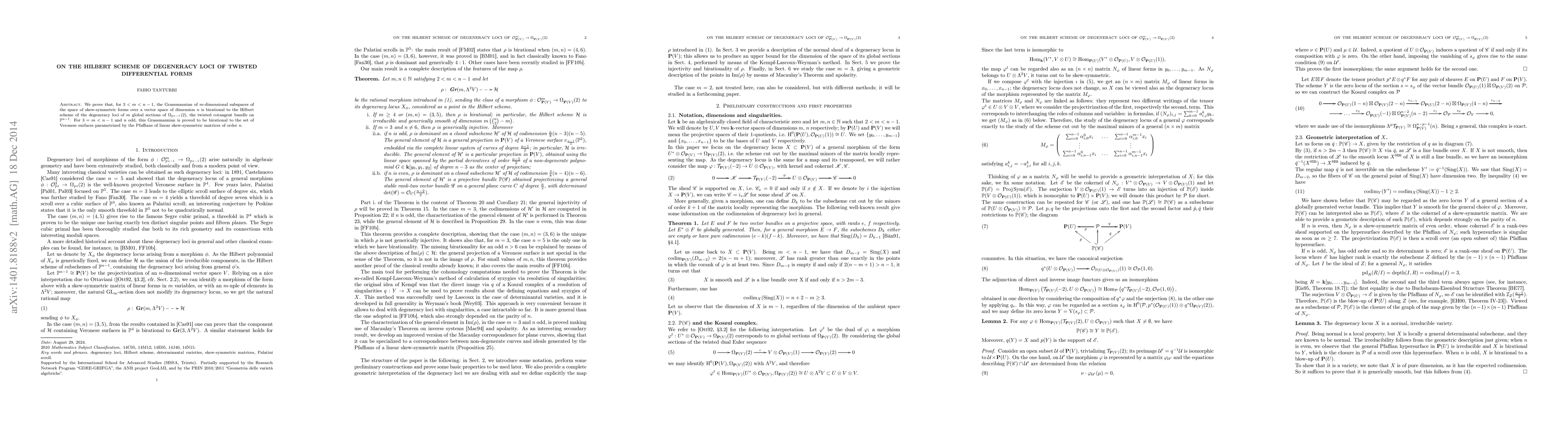 This research establishes a birational equivalence between the Grassmannian of m-dimensional subspaces of skew-symmetric forms and the Hilbert scheme of degeneracy loci for certain global sections of Omega(2), for 3 < m < n-1. Additionally, it shows a birational connection for m=3, n odd, to the set of Veronese surfaces parameterized by Pfaffians of linear skew-symmetric matrices.