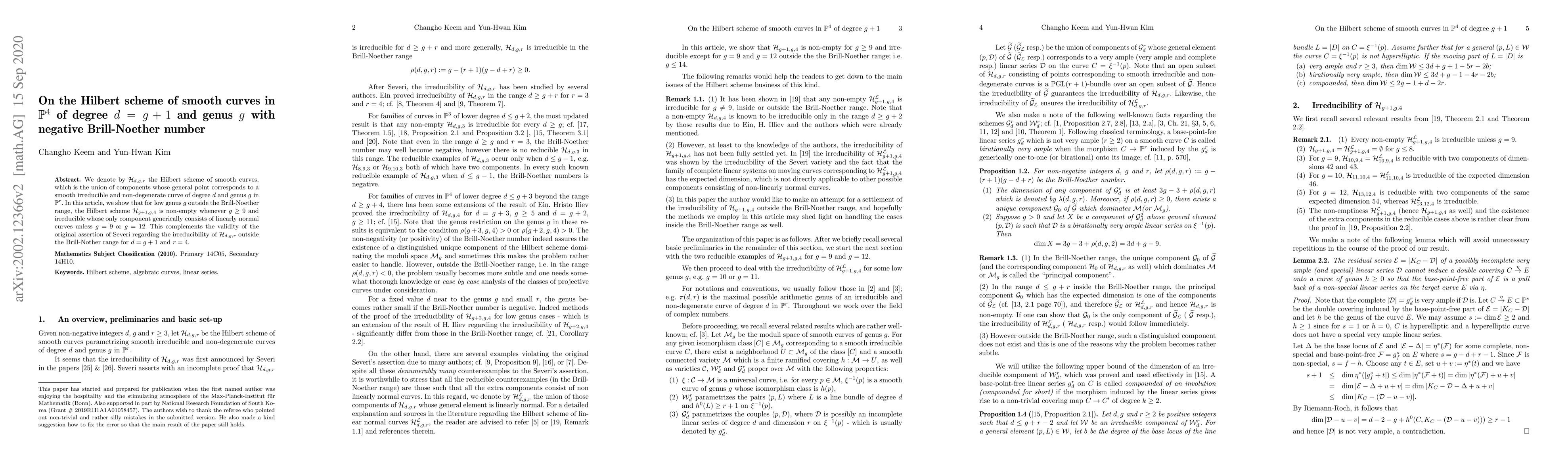 We denote by $\mathcal{H}_{d,g,r}$ the Hilbert scheme of smooth curves, which is the union of components whose general point corresponds to a smooth irreducible and non-degenerate curve of degree $d$ and genus $g$ in $\PP^r$. In this article, we show that for low genus $g$ outside the Brill-Noether range, the Hilbert scheme $\mathcal{H}_{g+1,g,4}$ is non-empty whenever $g\ge 9$ and irreducible whose only component generically consists of linearly normal curves unless $g=9$ or $g=12$. This complements the validity of the original assertion of Severi regarding the irreducibility of $\mathcal{H}_{d,g,r}$ outside the Brill-Nother range for $d=g+1$ and $r=4$.