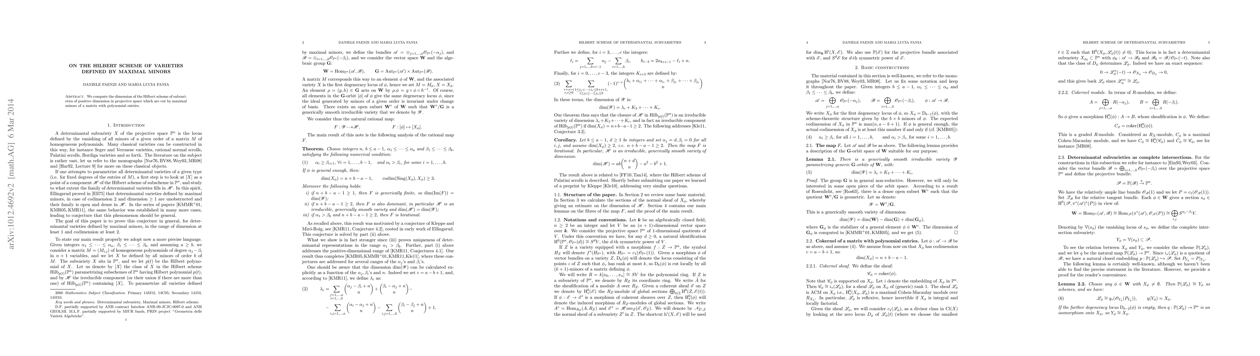 Researchers computed the dimension of a Hilbert scheme in projective space that classifies varieties defined by maximal minors of matrices with polynomial entries. This work focuses on understanding subvarieties of positive dimension.