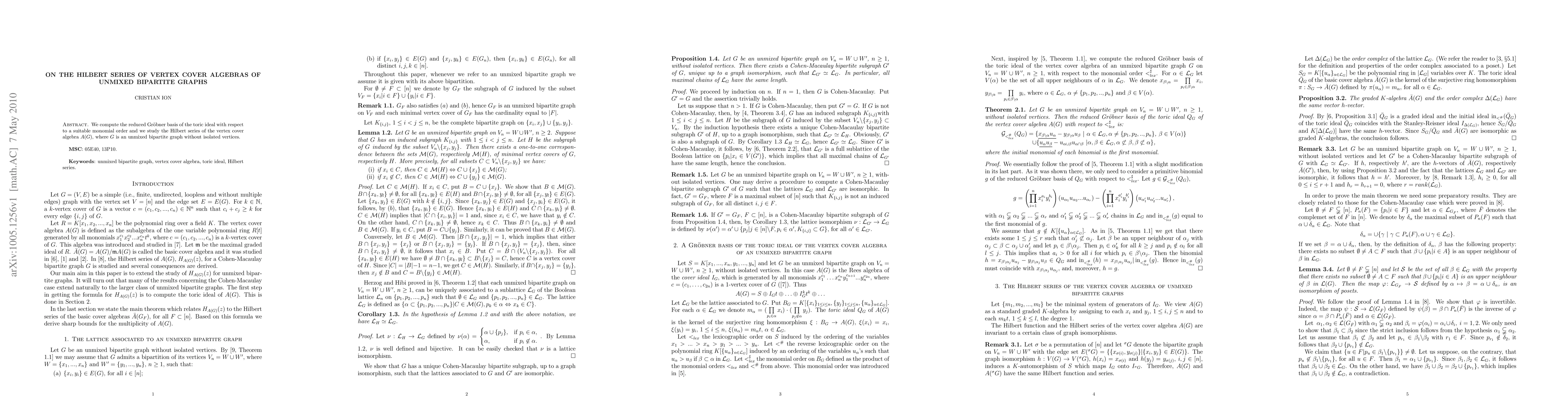 This paper calculates the reduced Gröbner basis for the toric ideal of unmixed bipartite graphs without isolated vertices and determines the Hilbert series of the associated vertex cover algebra $A(G)$.