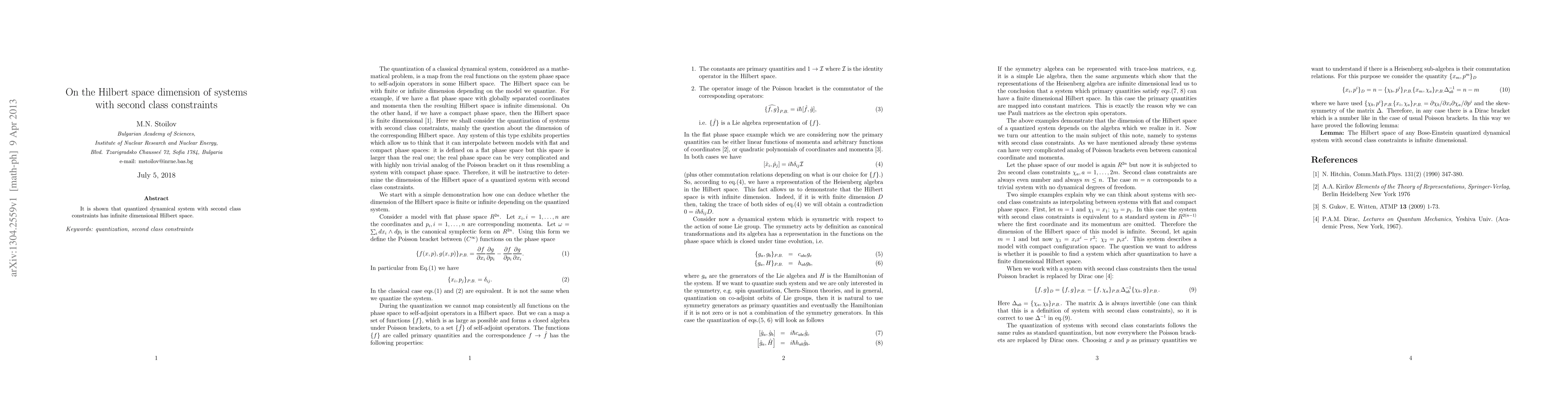 Summary: The study reveals that systems with second class constraints in quantum mechanics possess an infinitely dimensional Hilbert space, challenging traditional finite-dimensional assumptions. This finding has significant implications for the theoretical framework of constrained quantum systems.